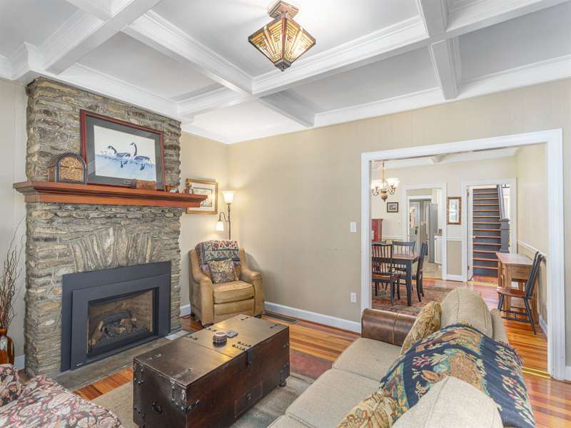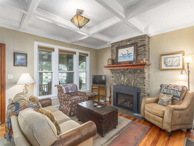 Enjoy breathtaking views of the lake and mountains from the front porch of this historic arts and crafts style home. This Lake Junaluska gem has it all, 5 bed/3 baths in the main home with a separate 1/1 carriage home. One of the most popular rentals on the Lake; continue and start making income. Would make an incredible full-time residence. High coffered ceilings, hardwood floors and a stone fireplace in the living room, adjacent library, primary bedroom and laundry on the main, kitchen with granite countertops. This spacious home has room for everyone you love. Custom outdoor living area with cathedral ceiling post and beam shelter, cobblestone base and driveway. Homes have been pre-inspected with many items corrected. Furniture and appliances are included. Don't miss this unbelievable opportunity to own this stunning income producing property at Lake Junaluska. Minutes to downtown Waynesville, Maggie Valley, a short drive to Asheville, the Blue Ridge Parkway & Great Smoky Mountains.