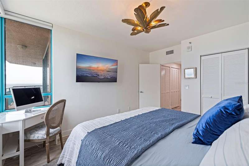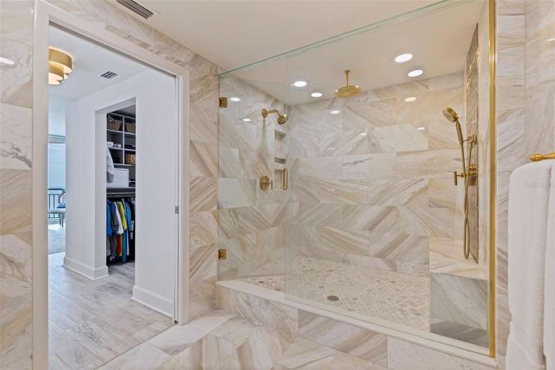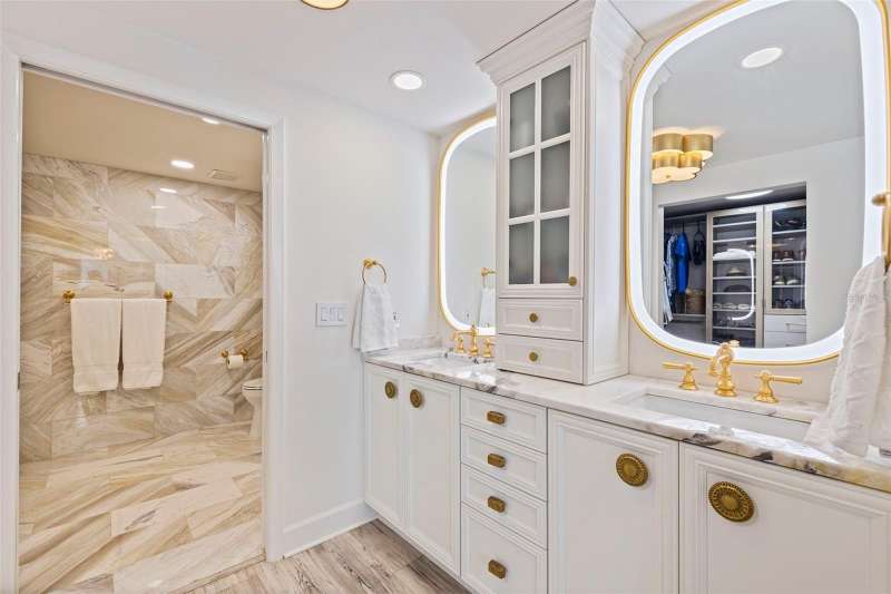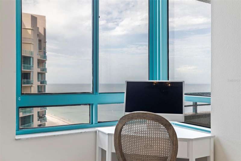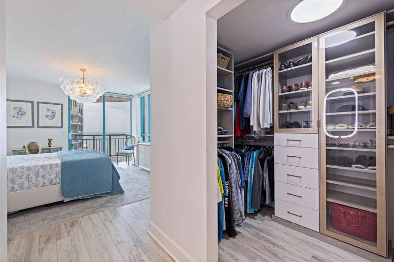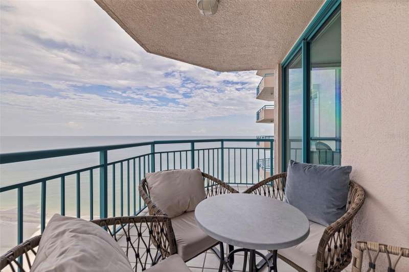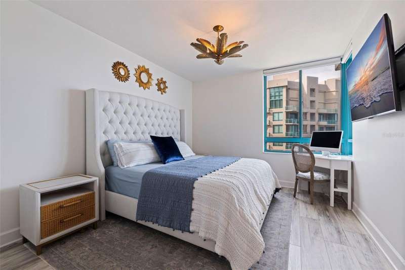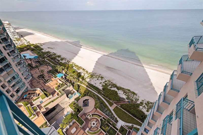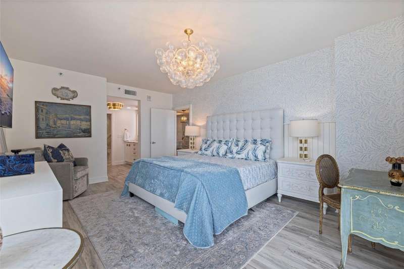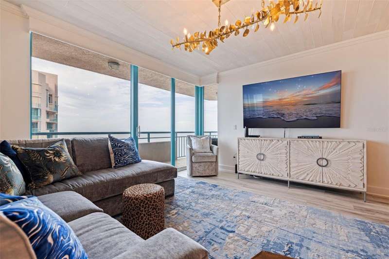 Under contract-accepting backup offers. ELEGANCE BY THE SEA! Step into this tastefully updated condo featuring upscale finishes & situated on the sugary sands of Sand Key Beach. Southwest exposture features views way down the beach with stunning sunsets everyday & Intracoastal views! Living Room & Primary Bedroom have sliders that open to a spacious balcony. Luxury Plank flooring throughout for easy maintenance. Living room has wood detail on the ceiling with crown molding. Kitchen featuries wood coffered ceiling. A gourmet's delight with stainless steel appliances, custom kitchen cabinery with Calacatta Namibia Dolomite countertops, slab backsplash & waterfall edge. Eat-in area with banquette seating & storage. Breakfast bar that opens to the living/dining room. Remote Sun Shades at all windows & doors with custom wood valances. Open floorplan with split bedrooms. Wake up in the Primary bedroom to the sounds of crashing waves & beautiful views of the Gulf. Wood wainscotting, large walk-in closet designed by California Closets & ensuite bath. Custom double vanity with dolomite countertops, & lighted vanity mirrors. Separate marble wet area with huge walk-in shower, bench & linen storage. Guest bedroom also features great views of the Gulf & lalrge walk-in closet. Guest bath has designer wallpaper with marble floors & marble walk-in shower. Designer lighting throughout featuring chandeliers by Visual Comfort, John Richard, Palacek and Currey & Company. A/C condensor, air handler & thermostat 2022. Coveted PRIVATE GARAGE #82 in parking garage. The Ultimar is a world class condo complex on Sand Key of famous Clearwater Beach. Miles of pure white sand. Lush tropical landscaped grounds are expertly maintained. 24 hr guard gated. True Resort Style complex has 3 geo thermal heated pools w/spas, 3 tennis courts, pickle ball, basketball ct, putting green, croquet lawn, grill area, firepit area, shuffleboard, corn hole, gym, steam & sauna, billiards rm, media rm, social rm with catering kitchen and baby grand piano. Walk to great restaurants & shops or catch the Beach Trolley right out in front of the building. A short drive to Tampa & the airport plus all of the sports venues of our championship teams. START LIVING THE FLORIDA BEACH LIFESTYLE TODAY!! Buyer to verify room dimensions. See Video. Call to make an appointment for your private viewing today!