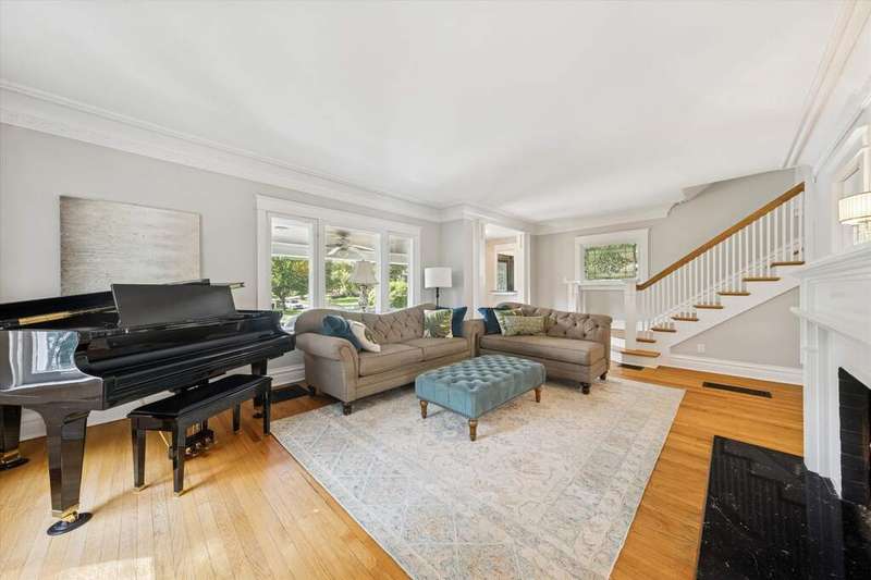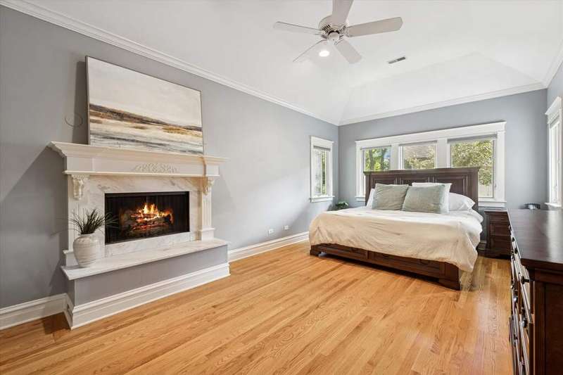 If you were looking for an A++ location, look no further than 23 N. Vine, conveniently located steps to town, train, schools and shopping! You are immediately greeted with a welcoming front porch that stretches across the entire width of the home. As you step inside, the entryway is illuminated by natural light giving the space an inviting, warm atmosphere. High ceilings and classic detailing throughout the home only add to the charm, while the open floor plan ensures easy flow between rooms. The crisp kitchen with large island connects to both the dining room and the breakfast nook, making it an ideal space for both formal and casual gatherings. Sip your coffee in the cozy sun room with heated floors overlooking the wonderful outdoor space. With five bedrooms on the second and third floor, the home offers plenty of room for family and guests, each one generously sized. The master suite is a true retreat, offering its own fireplace and a luxurious ensuite bath. Make your way outside to the beautifully manicured gardens and spacious yard, perfect for entertaining or relaxing. Overall, this home offers the perfect balance of elegance, charm, and comfort, with every detail thoughtfully designed to create a living space that feels as grand as it does welcoming. Other features include: three fireplaces, impressive 3 car garage, newer roof, fenced in yard. Don't miss this one!