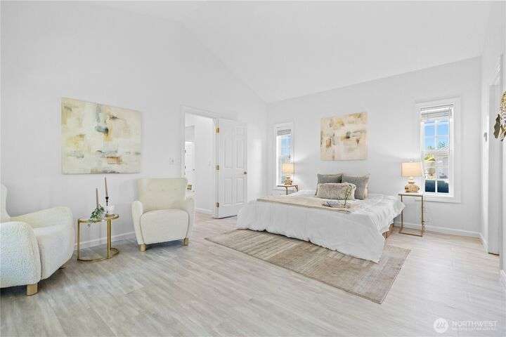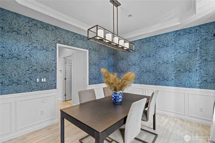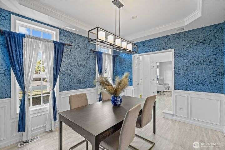 Recently refreshed interior with new paint. A nod to tradition! Classic Colonial elegance seamlessly merges with modern living. Adorned with Juliet balconies and stately white pillars, sets the tone for a sophisticated living experience. Spanning three levels, featuring five bedrooms, including a primary on the main level with an en suite and a private patio. Living room features soaring ceilings, with large windows that frame the picturesque backyard. Versatile loft on upper level. Hidden bonus space off the upper bedroom makes for a creative playroom space. Every box checked! Full yard sprinkler system, air conditioning, gas fireplaces, LVP throughout, gas range, and large backyard. Your chance to join Berkshire.