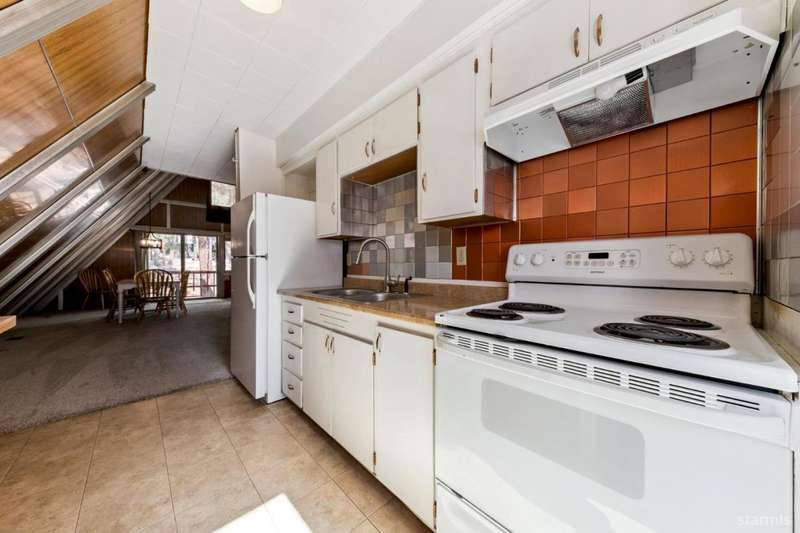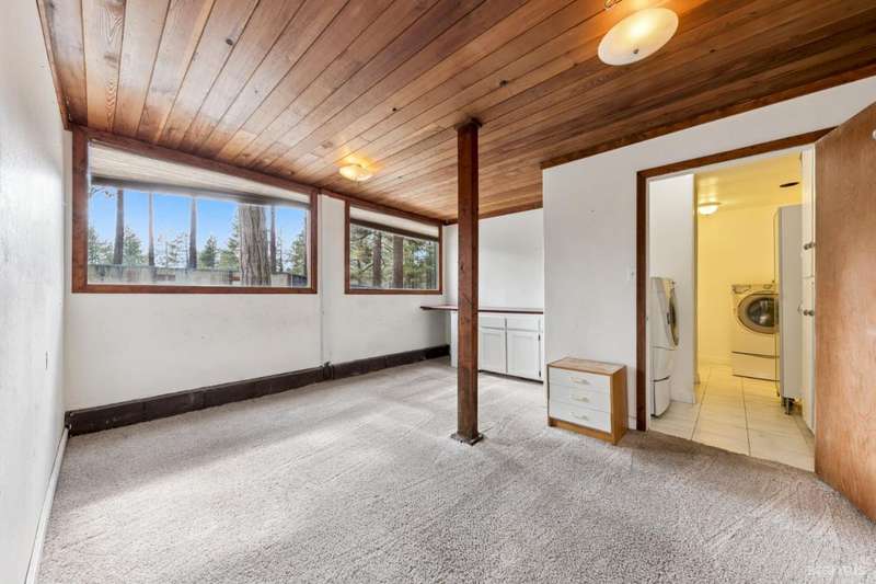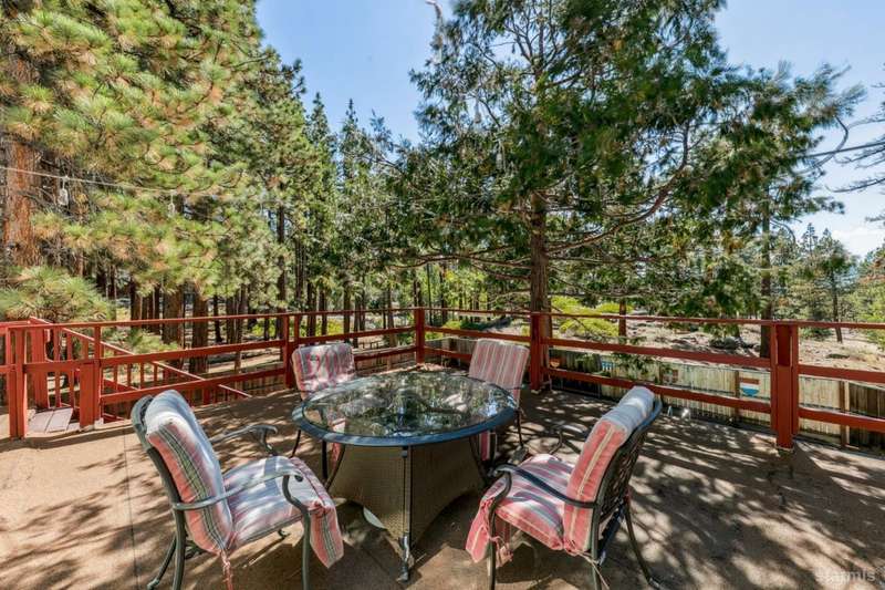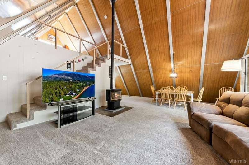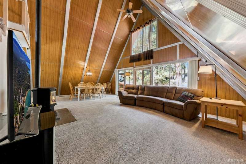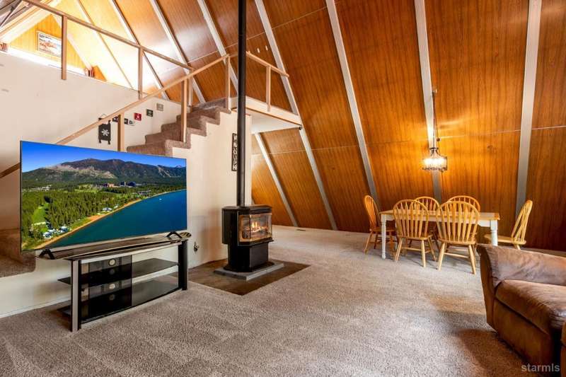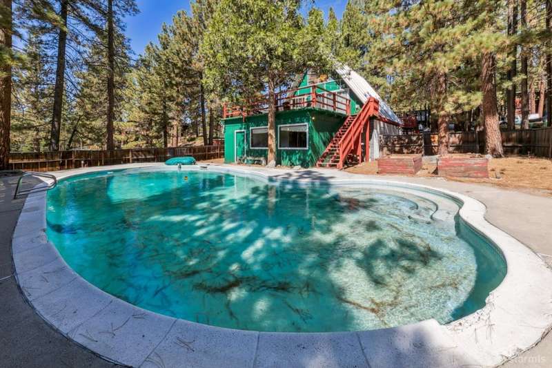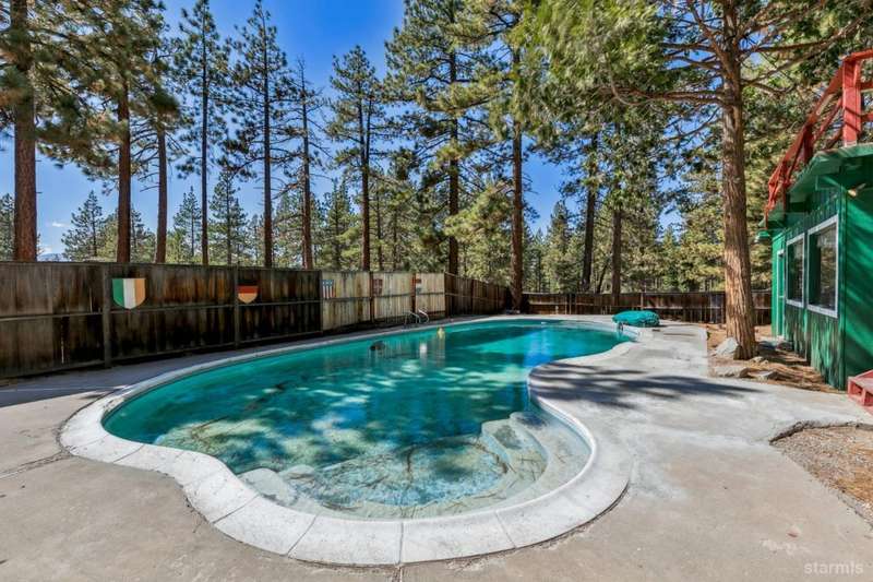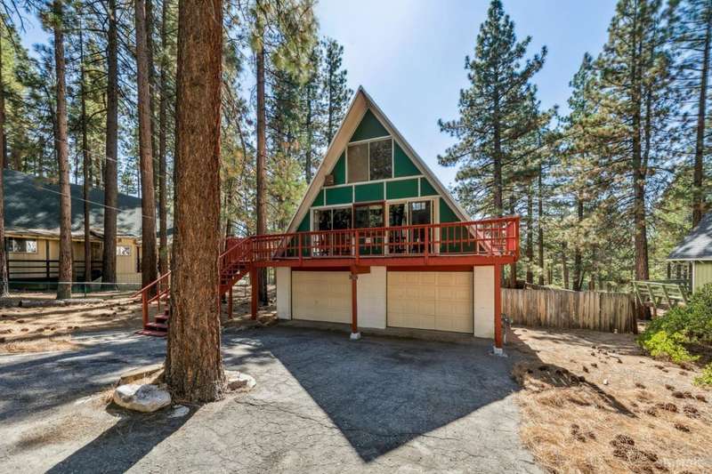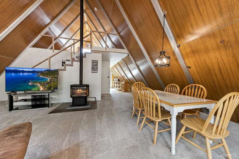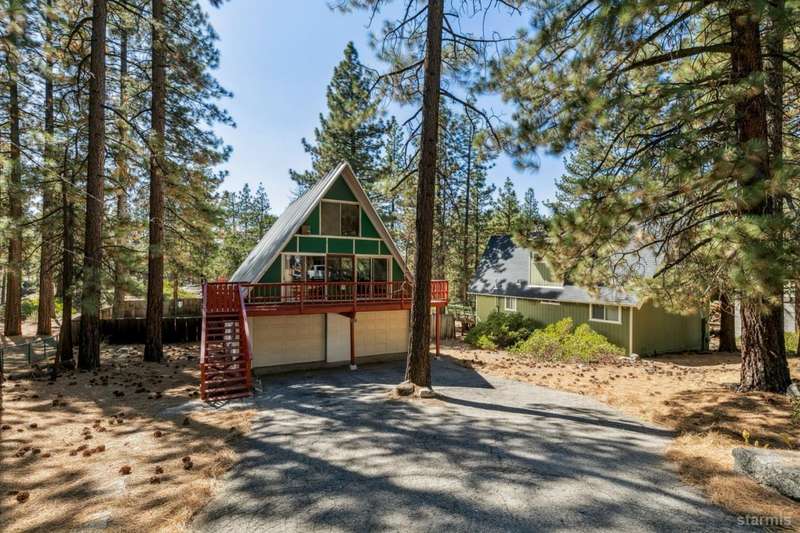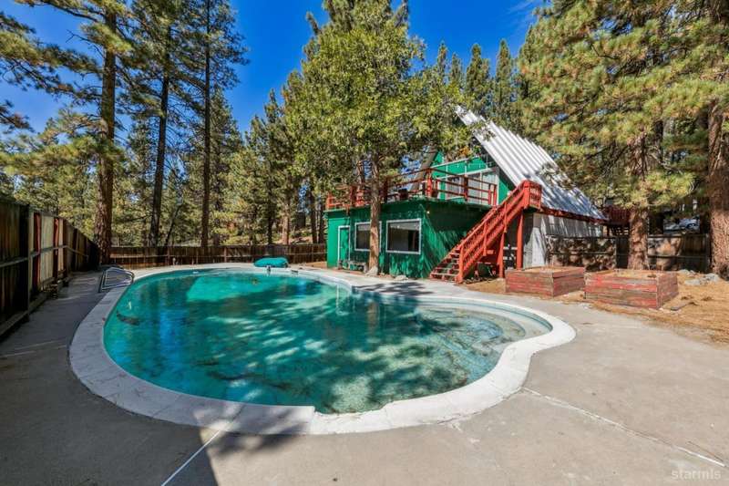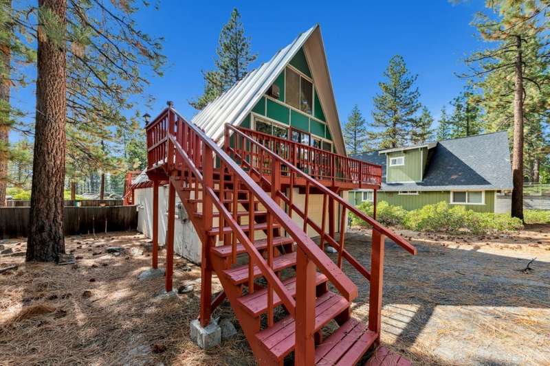 A RARE opportunity in the highly desirable Lakeview Heights neighborhood! Discover this stunning A-Frame home located in the heart of South Lake Tahoe, perfectly positioned near Heavenly Ski Resort for year-round mountain adventures. This charming 3-bedroom, 2.5 bathroom retreat sits on an expansive 10,890 square foot lot that backs directly to United States Forest Service land, offering unparalleled privacy and natural beauty.The living area features tall- vaulted ceilings, a spacious open layout, and a gas fireplace. The main level features a bedroom, full bathroom, half bathroom, and a large loft-style bedroom upstairs offering additional space. The third bedroom includes a separate entrance with a dedicated full bathroom and laundry area, making it ideal for guests or potential rental income opportunities.Outside, the fully fenced backyard creates a private oasis complete with a patio area and refreshing pool, and huge deck - a perfect combination for relaxing and entertaining. The oversized driveway and two-car garage provide ample parking and storage for all your mountain gear and recreational equipment, boat, or RV.Located on a quiet street just minutes from the base of Heavenly Ski Resort, the casinos, the beach, and great dining and shopping options, this is one of Tahoe's most desirable neighborhoods.
