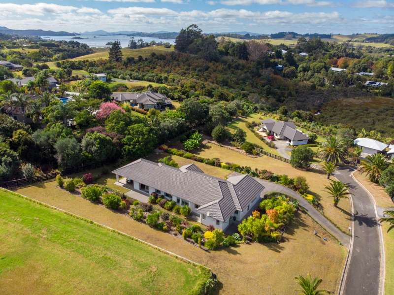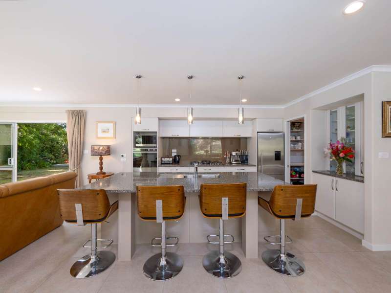 Welcome to 7 Palm Drive, where space, style, and serenity come together in a home perfectly designed for a comfortable and convenient lifestyle! This quality Platinum home is constructed with plaster over brick, and features double glazing throughout, internal access garaging and four generously sized bedrooms, including two with private ensuites, and a dedicated office space—ideal for working from home or study. Heading inside via the impressive, landscaped front entrance, immediately to the right is a separate second lounge - perfect for teenagers or a second tv. Beyond this is the expansive open plan dining, kitchen and lounge area - truly the heart of this beautiful home. Here, the gourmet kitchen comes complete with a butler’s pantry, and a large kitchen island and breakfast bar, making entertaining a breeze and day-to-day living a real pleasure. Three separate sliding doors connect seamlessly to outdoor spaces on both sides of the house - perfect for chasing or escaping the sun morning, noon or night. A covered outdoor area to the rear is the perfect setting for gatherings, barbecues, or quiet evenings - with lovely terraced gardens providing both shelter and privacy - whilst the front patio is the perfect spot for breakfast and coffee with beautiful Inlet views across the lawn. Outside, the 4008m² section features low maintenance gardens, and terraced lawns for easy-care mowing - leaving you more of your own time for rest and relaxation. Positioned so close to Waipapa Landing boat ramp, quality schools, the Stone Store precinct and just minutes to beaches and both Waipapa and Kerikeri villages, 7 Palm Drive offers a peaceful backdrop while still being close to town and local amenities. This is the perfect property for families, professionals, those who love to entertain, and those who like their privacy - offering the space, quality, and location to enjoy the best of the Kerikeri lifestyle. Enquire today to make this exceptional home yours.