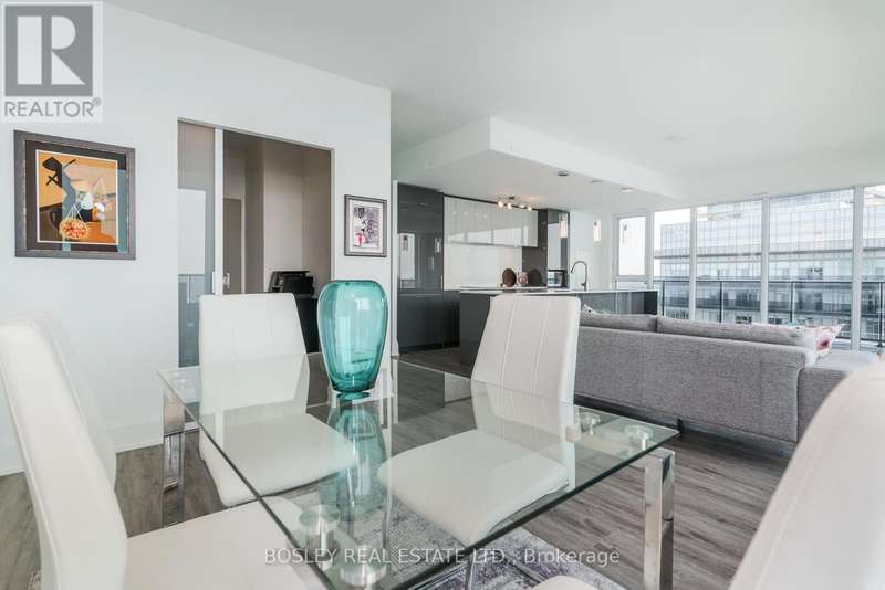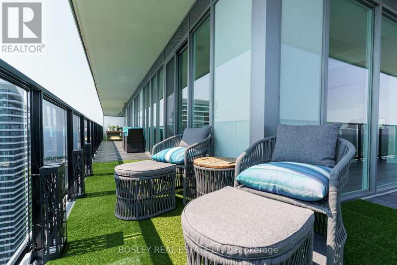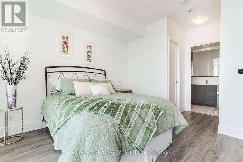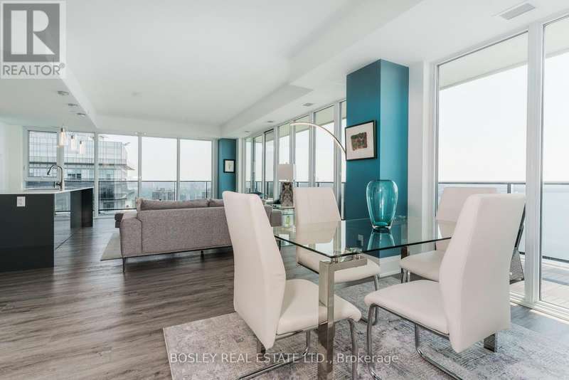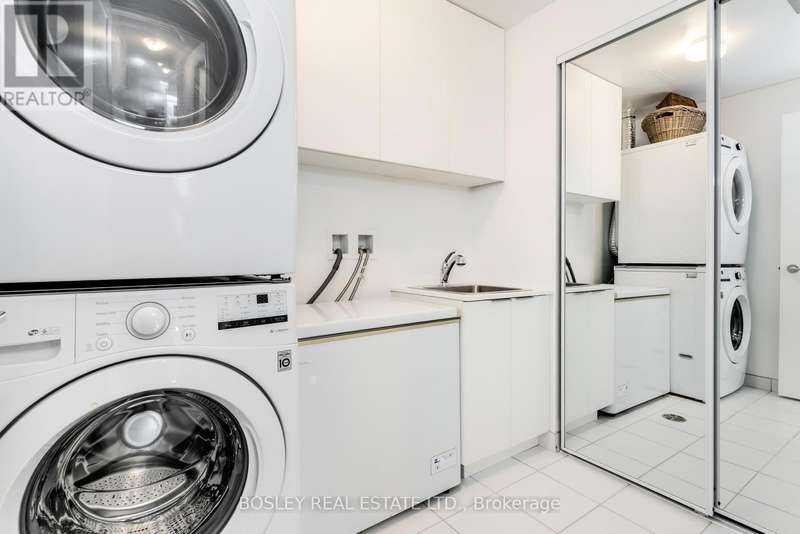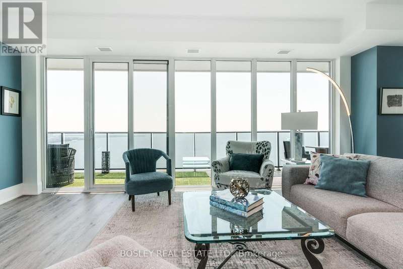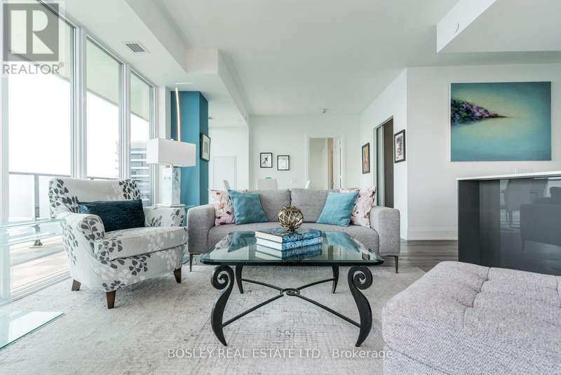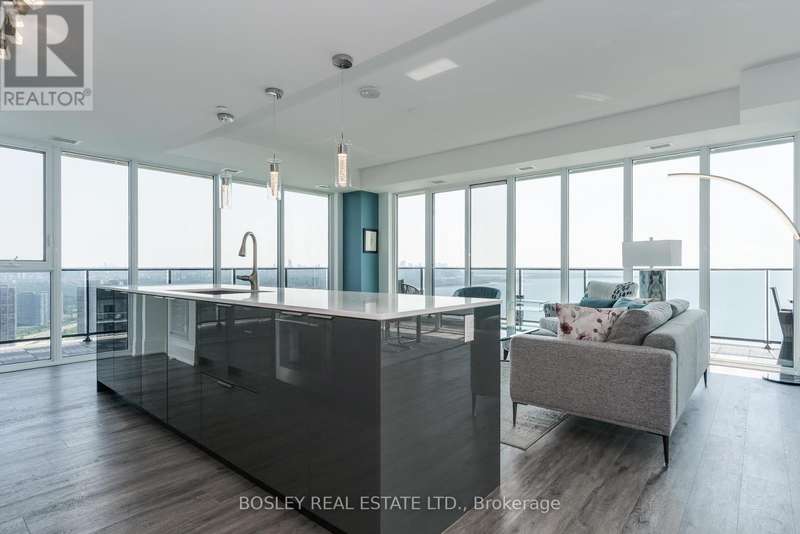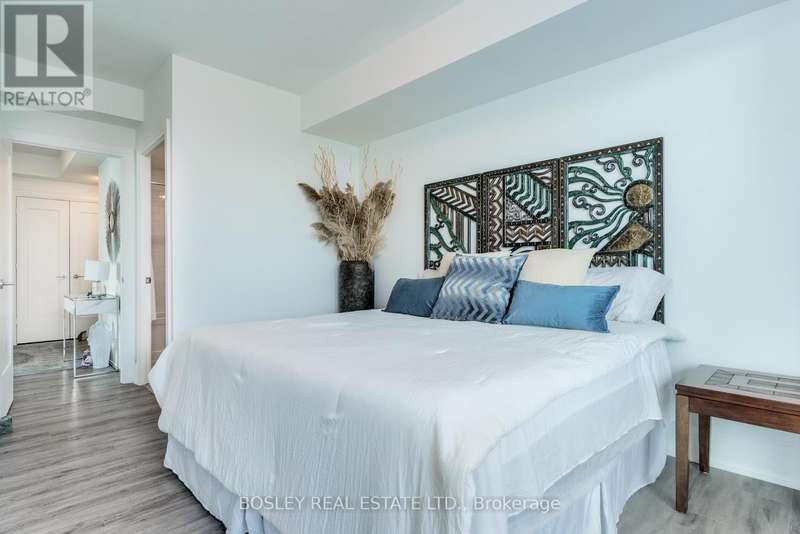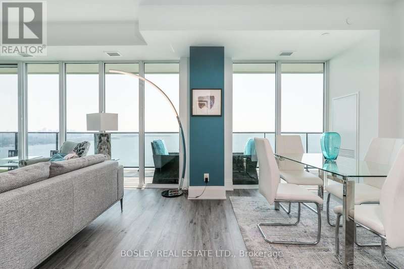Humber Bay Shores is a coveted Toronto waterfront enclave where the tranquility of lakeside calm meets urban ease & upscale living. Steps to the Martin Goodman Trail and a vibrant dining & patio scene. Metro, Shoppers, LCBO & major banks are all walkable. With TTC at your door and a future GO station planned, access to downtown & beyond is seamless. Rising 56 storeys, Vitaon the Lake is a 3-year-old building offering refined amenities including 24/7 concierge, 5 high-speed elevators & on-site management. The 5th floor features a fully equipped fitness centre with cardio, weights, yoga studio, saunas, a stylish party room & private dining room with walkouts to the pool, sundeck & BBQ terrace. Two guest suites, ample visitor parking, underground car wash and pet wash stations provide daily convenience. THE VIEW!! You'll be swept away upon entering this expansive 1,544 sq ft south/east corner suite, where unobstructed & breathtaking views stretch over Lake Ontario, the Mimico Yacht Club, and the glittering Toronto skyline & iconic CN Tower. Floor-to-ceiling windows bathe the interiors in natural light, while a tiled wraparound corner balcony extending the full length of the suite on both ends, offers magnificent sunrise-to-sunset vistas. The foyer with recessed ceiling, double closets, guest powder room & walk-in pantry, opens to a chefs kitchen with quartz backsplash, custom 11-foot quartz island & premium Thermador & Liebherr appliances. The open-concept living, dining and den features 9-foot smooth ceilings, wide-plank luxury floors and custom 7-inch baseboards throughout. The split-bedroom layout includes two elegant 4-piece ensuites with quartz counters & porcelain tile. The primary bedroom offers dual walk-in closets & south-facing balcony access; second bedroom features a walk-in closet & east-facing balcony access. Laundry room with stacked appliances, chest freezer, sink, cabinetry & closet storage. Includes 1 locker & 2 side-by-side parking spots.