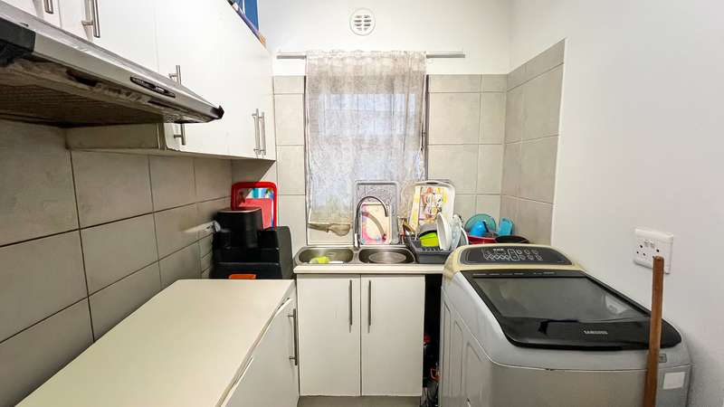 No Transfer Duty & VAT Inclusive This charming 75 sqm ground floor apartment is nestled in the sought-after Larryville, Moram Road, Wynberg Village, conveniently located above the railway line. Offering a blend of comfort and style, this apartment boasts a spacious, light-filled lounge with stunning parquet flooring, extending out to a secure and private balcony – perfect for relaxing or entertaining. The apartment features a generously sized main bedroom and a second smaller bedroom, both with elegant parquet flooring and built-in cupboards, providing ample storage. The tiled family bathroom is well-appointed, complete with a shower over the bath, toilet, and hand basin. The fully fitted kitchen is a highlight, featuring sleek white granite countertops, a Bosch under-counter oven, Bosch touch-screen hob, extractor fan, and plumbing for a washing machine or dishwasher. Water and electricity are on a prepaid system, ensuring convenience and control over utilities. This pet-friendly complex (subject to application approval) offers excellent security with an auto gate, perimeter electric fencing, and an allocated parking bay for your convenience. Ideally situated near public transport, major roads, shops, schools, and places of worship, this apartment offers an excellent lifestyle in a vibrant and well-connected neighborhood.