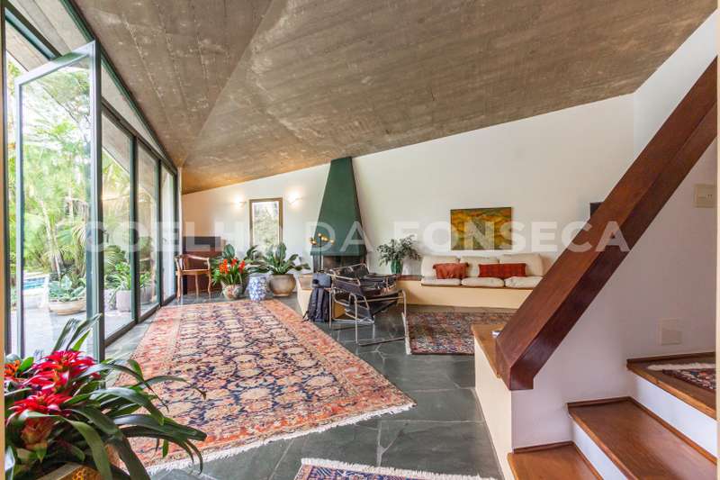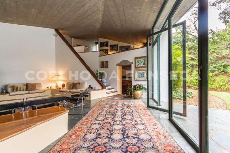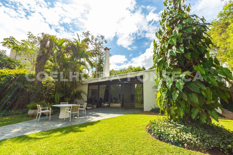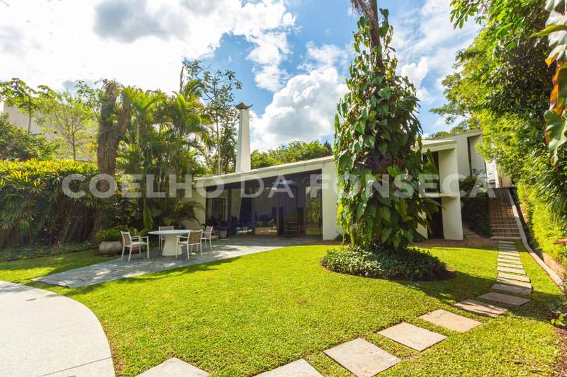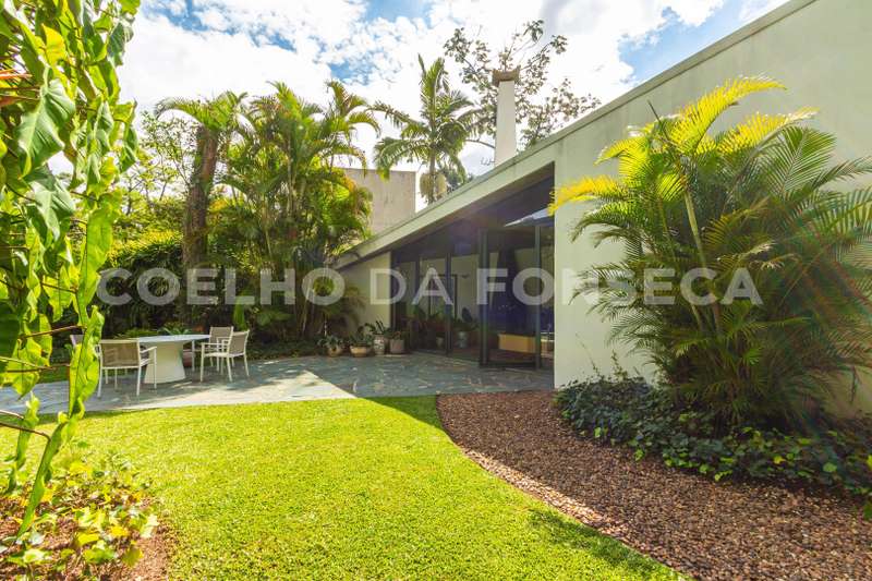 Casa em estilo moderno atemporal, projetada pelo arquiteto Eduardo Longo, erguida em um terreno de 1.550 m2, contempla um vasto jardim em uma região do Morumbi preservada com muito verde.