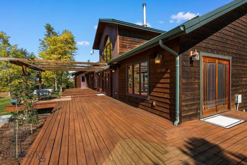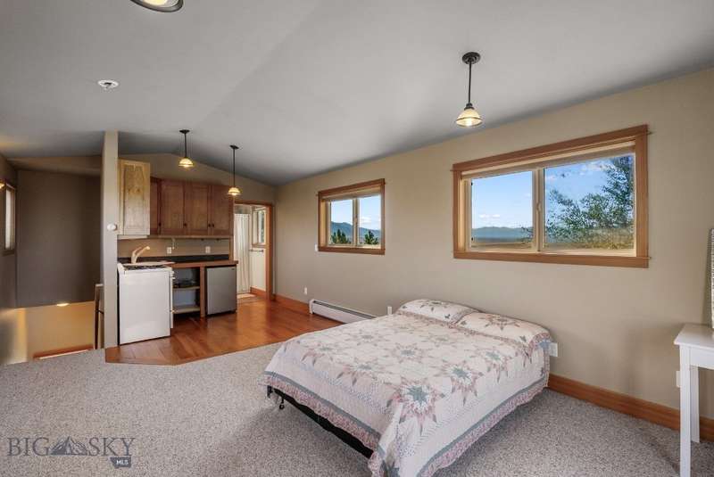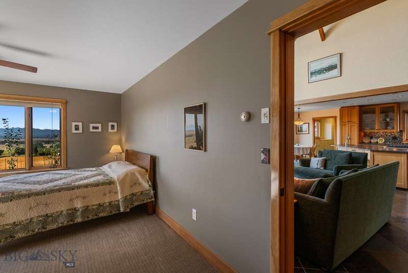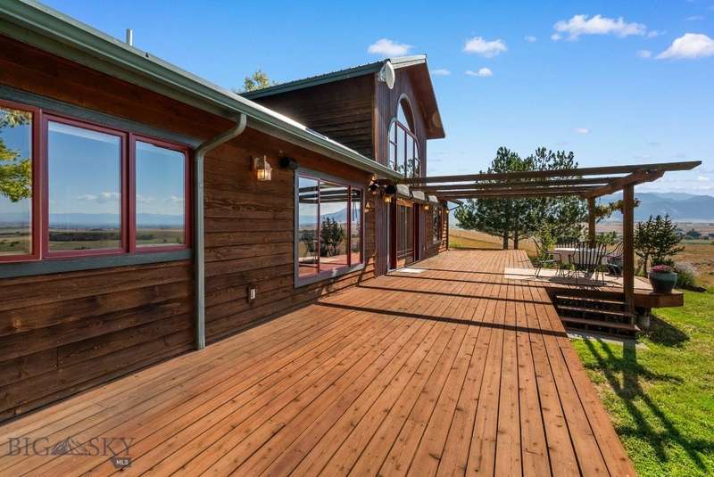 Breathtaking views of Gallatin Valley from every direction on this private 14 acres! This property is located slightly above the valley on a private road surrounded by large agricultural parcels, which offers amazing views, privacy, and tranquility. The location is just outside of Bozeman with easy access to town, an abundance of hiking trails, skiing, fishing, hunting, and rafting. The wildlife is abundant - deer, elk, antelope, moose, foxes, owls, cranes, and much much more! The property has been exceptionally maintained. The main house boast three bedrooms and three bathrooms, an open floor plan on the main level with ceiling to floor windows in the living area, creating an abundance of light and southern exposure with passive solar heating in the winter. There is a full finished basement with two bedrooms with egress windows and a full bathroom, lots of additional living space, and an open utility room. The house has radiant heat throughout, a wood stove in the living room, and three additional split units for heating and cooling. There is a full guest quarters located above the adjacent building which also includes a pass through covered area for equipment and tools, and a lower living area with radiant heating in the floor. This space can be finished into a living space, converted back into a workshop, or a bonus room. Additionally the property has two wells, two buried 1000 gal propane tanks, a fenced in garden area, a beautiful pond that is lined and aerated by a windmill, a deck that is south facing and wraps around to the outside of the master suite, in-ground sprinklers, and an attached full sized two car garage. This is a must see in person property!