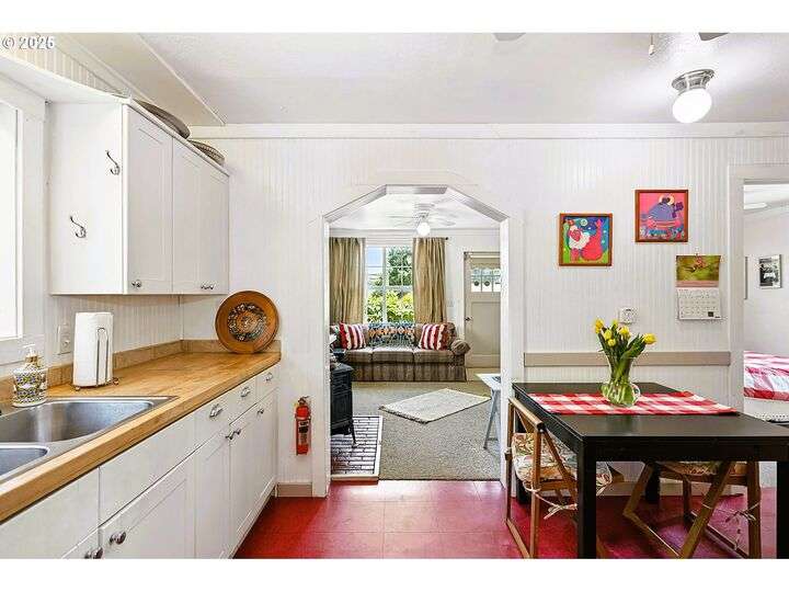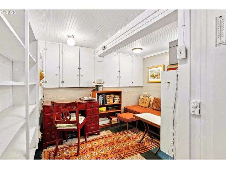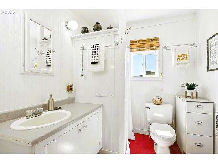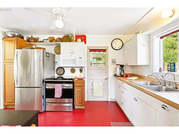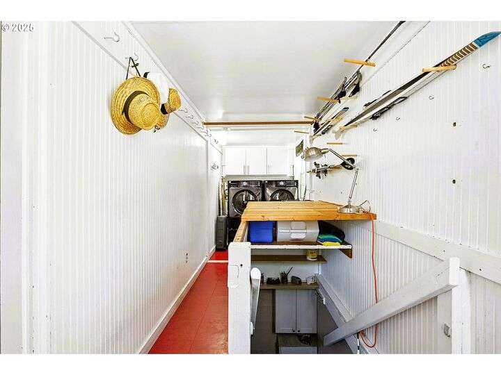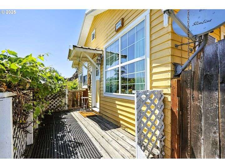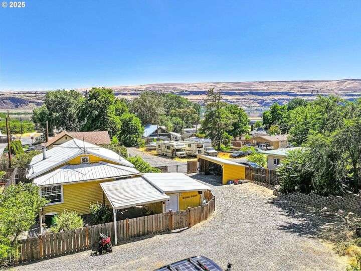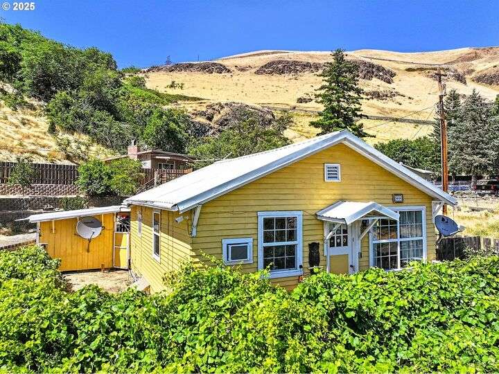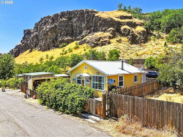 Absolutely Charming!! Cottage with River Glimpses on a Fully Fenced Double Lot! This delightful cottage offers light-filled living spaces and subtle views of the river, all set on a fenced & gated double lot. Prior updates include vinyl windows, beadboard accents on the walls and ceilings, and the addition of a cozy woodstove for chilly days. The updated kitchen features a dining nook, retro-style red marmoleum-styled flooring, tons of cabinet storage and includes both the refrigerator and stove. The main level offers a comfortable light & bright bedroom and cute full bath, along with a utility area complete with washer, dryer, and additional storage. Downstairs you'll find a second bonus room currently used as a bedroom (non-conforming) and a 2nd bonus room used as a den. Both have ample built-in storage cabinetry and the den/office has built-in shelving perfect for books or keepsakes. Step outside your back door to enjoy a private backyard with a cute covered paver-patio, workshop/shed, and plenty of space to build an elevated viewing deck in the backyard, ideal for taking in sunsets over the river. There's also an extra 3-sided covered storage Shed for Sports or yard equipment and the Huge-Enclosed Driveway has plenty of room for your Sprinter Van or RV's! Whether you're looking or a full-time residence or a peaceful vacation retreat in the Gorge, this home is a true gem! Shown by Appointment Only and Buyer to Confirm all Information.
