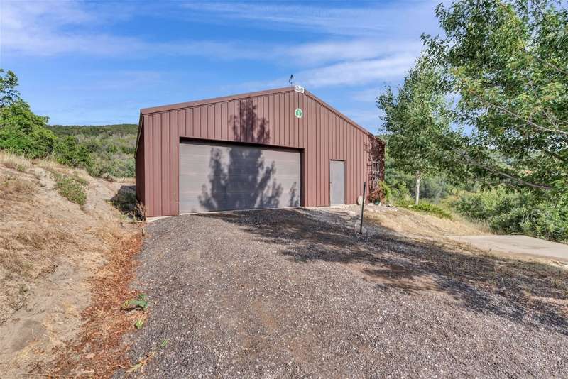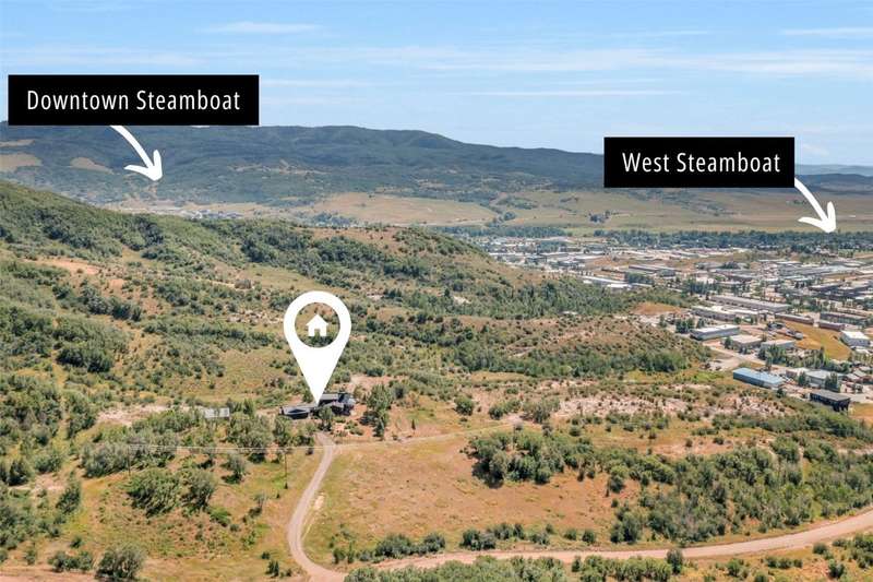 Begin the next trail in life on Game Trails! Located adjacent to the northern boundary of Steamboat Springs, this rarely available, 50-acre Game Trails property has aspen and oak brush covered rolling hills creating a private setting, yet downtown is just minutes away. The 3,256 square foot home includes five bedrooms, three full baths, two half baths, vaulted ceilings, wood floors, river rock fireplace, and a three-car detached garage. The fenced yard has mature landscaping, including fruit trees, the water well has recently been upgraded with new wellhead equipment, and a 1,700 square foot metal shop with concrete floor is perfect for projects, storage or recreational equipment and cars. Horses are welcome and two springs have been adjudicated for livestock use. Come take a look...where else will you find a house, shop and 50 acres adjacent to Steamboat?