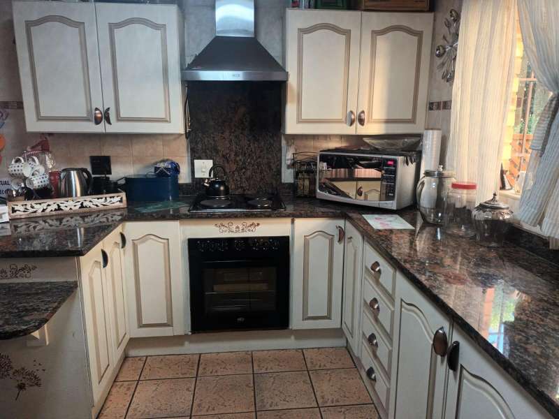Nestled in a secure gated complex with no levies, this beautiful family home offers the perfect blend of comfort and modern living. Featuring three spacious bedrooms and two bathrooms, the main bedroom boasts a full en suite for added convenience. The open-plan living areas seamlessly flow into a modern kitchen with ample cupboard space and a separate scullery/laundry, making daily living effortless. Designed for entertainment, the home includes an indoor entertainment area with a built-in bar and braai, as well as an additional outdoor entertainment space with canvas sides, ensuring year-round enjoyment. The property is equipped with prepaid electricity, a JoJo tank, and gas geysers for efficiency and cost savings. A double garage and a large carport accommodating three vehicles provide ample parking space. The beautifully established garden, complete with a tranquil water feature, creates a serene outdoor retreat, and the property is pet-friendly, making it ideal for the whole family. Don?ÇÖt miss this incredible opportunity?Çöschedule your viewing today!