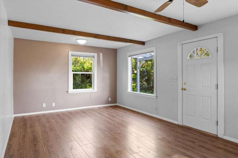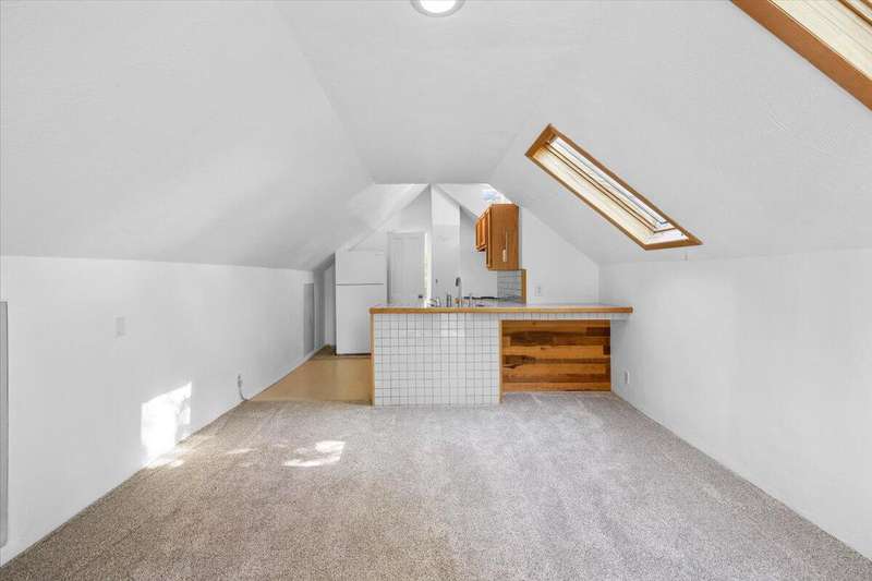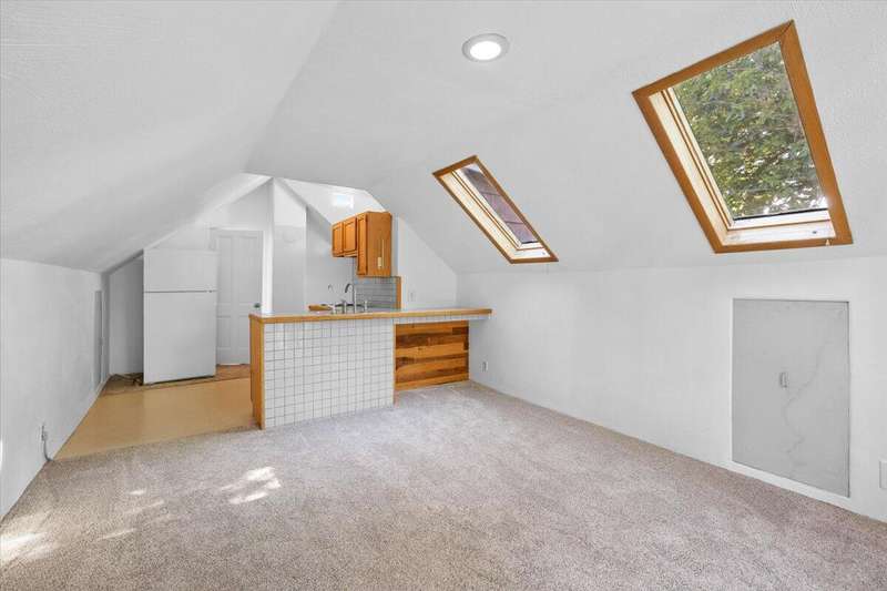 This versatile property offers a range of living options: enjoy it as a single-family home with a private upstairs guest suite, or take advantage of its rental potential just minutes from town, parks, and schools. The charming main level features two bedrooms, one bathroom, and efficient ductless heating and cooling. Upstairs, a separate one-bedroom suite includes a full bathroom, kitchenette and a private exterior deck—perfect for guests or tenants. Additional highlights include a newer roof, updated carpeting throughout, and plenty of off-street parking in the back. Zoned R-2; buyer to perform their own due diligence.