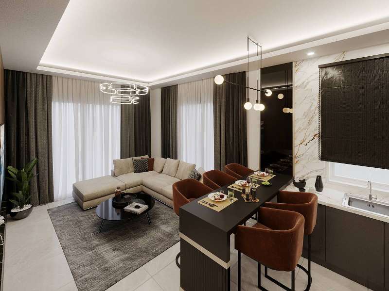 Buy flat in Alanya, Antalya, and start to experience an advantageous location and its amenities. Flats are 650 m from the belt highway, 2.3 km from the beach, 4 km from Alanya center, 37 km from Gazipasa Airport, and 120 km from Antalya Airport.