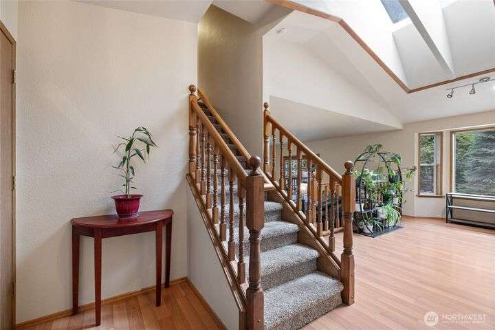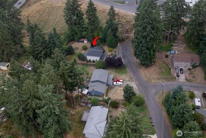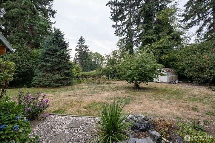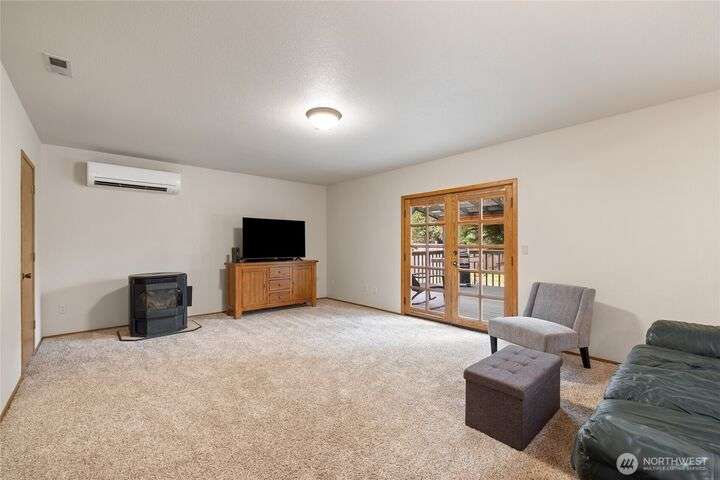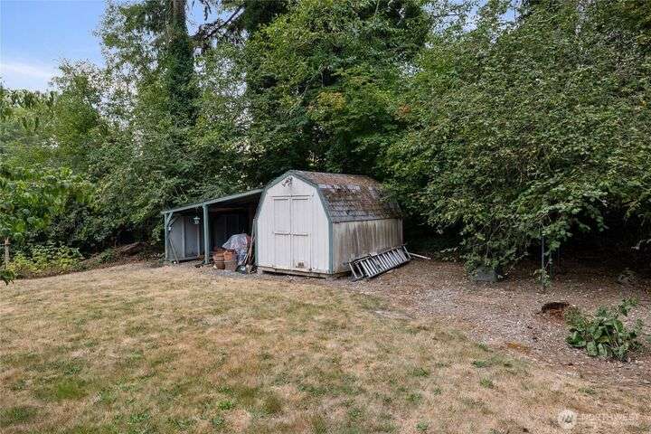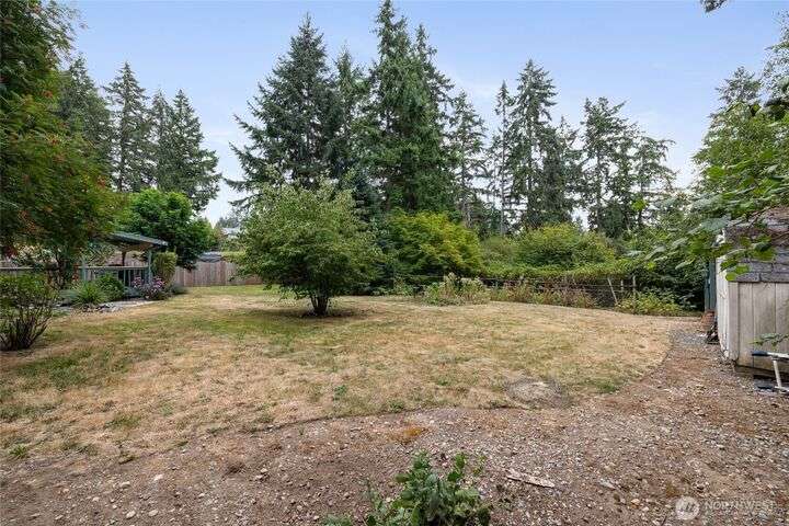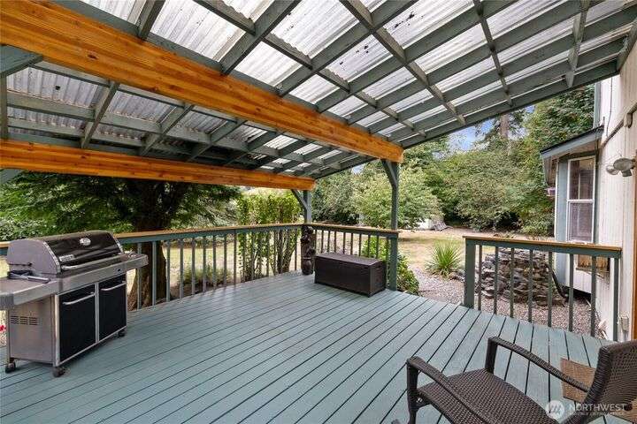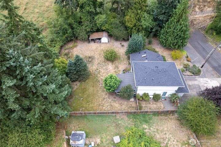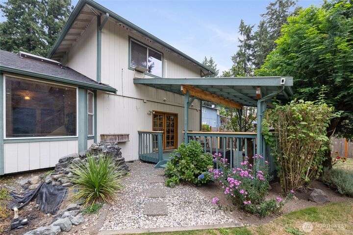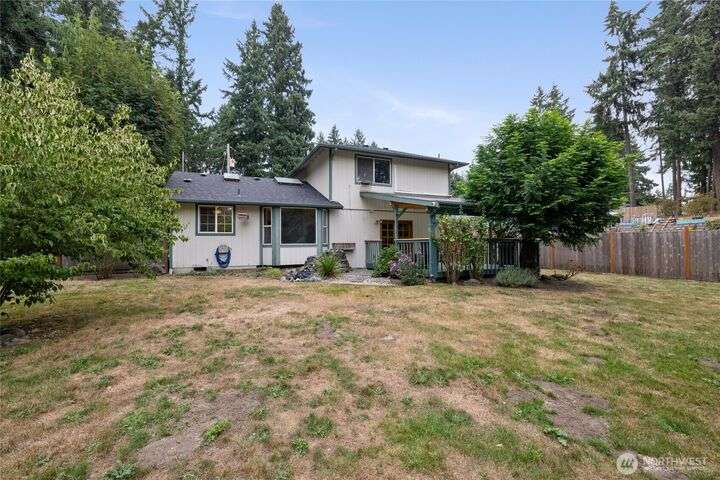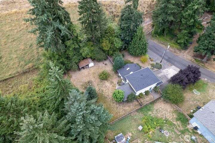 Experience peaceful living in this 3-bed, 2.5-bath retreat, the last house on a quiet dead end rd on a nearly half-acre lot. Thoughtfully updated with new roof, fresh interior paint and new carpet, this home blends comfort and style with vaulted ceilings, skylights and a cozy pellet stove. Home boasts a bright and open family/kitchen/dining area with bay window, while mini splits ensure year-round comfort. Versatile utility spaces add convenience. French doors open to a lg covered deck overlooking a private, fully fenced yard with shed, covered storage, garden space, berries and fruit trees—perfect for entertaining, unwinding, pets or play. Move in ready for your next chapter and conveniently located just minutes to JBLM, shopping & more!