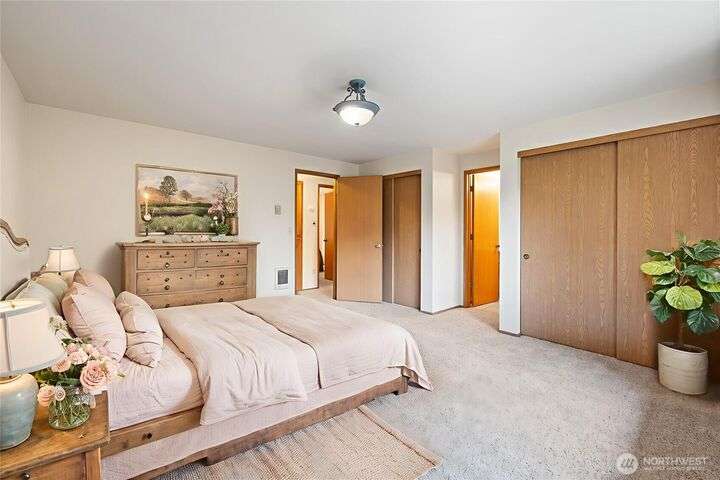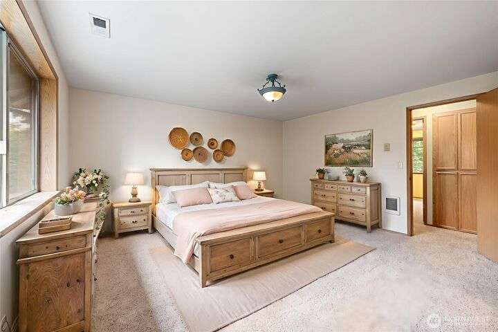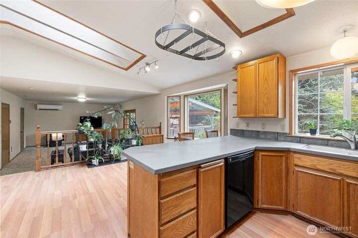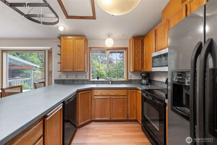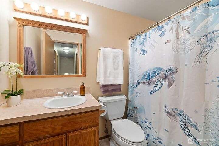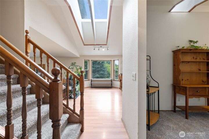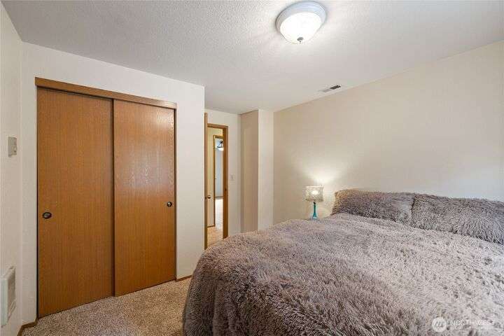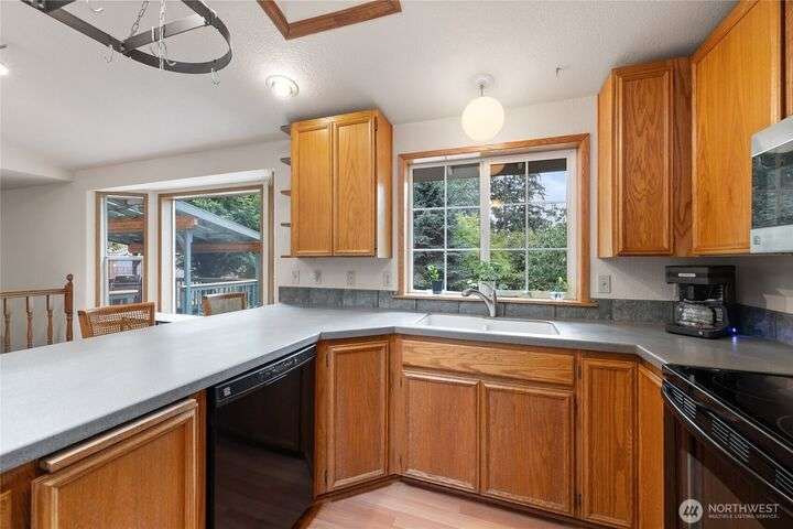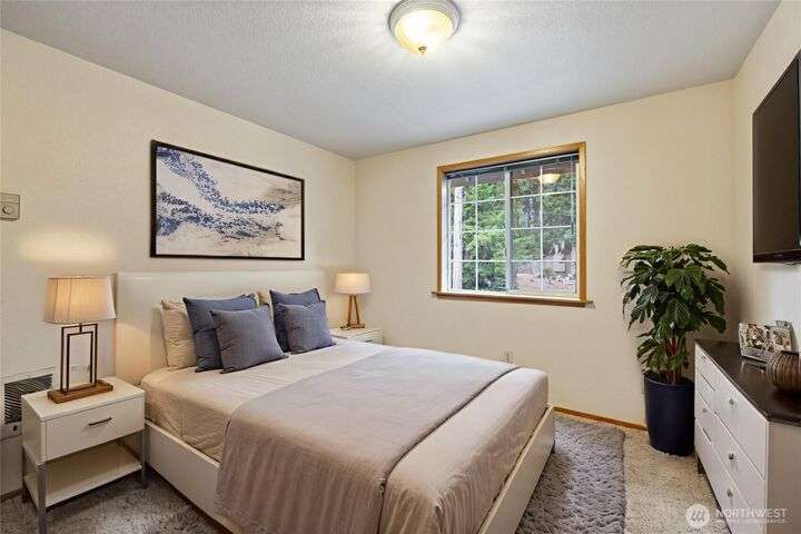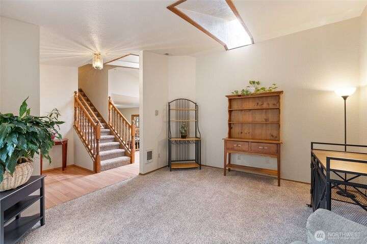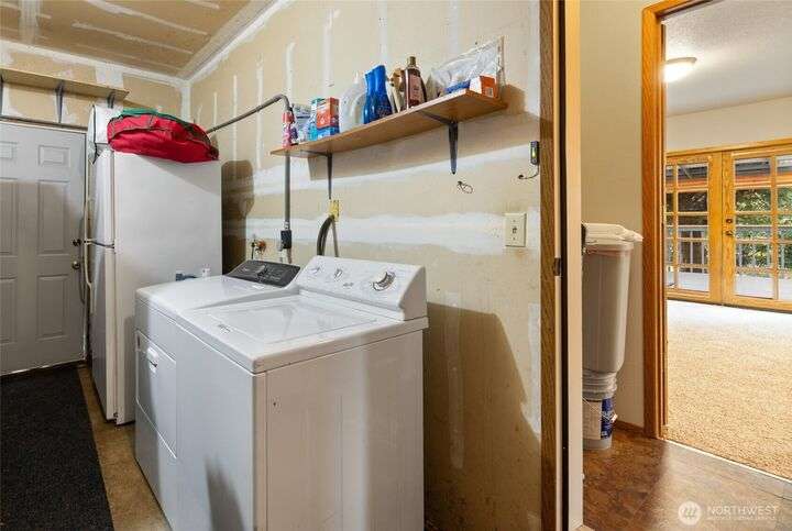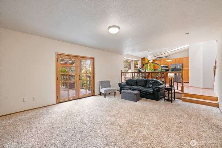 Experience peaceful living in this 3-bed, 2.5-bath retreat, the last house on a quiet dead end rd on a nearly half-acre lot. Thoughtfully updated with new roof, fresh interior paint and new carpet, this home blends comfort and style with vaulted ceilings, skylights and a cozy pellet stove. Home boasts a bright and open family/kitchen/dining area with bay window, while mini splits ensure year-round comfort. Versatile utility spaces add convenience. French doors open to a lg covered deck overlooking a private, fully fenced yard with shed, covered storage, garden space, berries and fruit trees—perfect for entertaining, unwinding, pets or play. Move in ready for your next chapter and conveniently located just minutes to JBLM, shopping & more!
