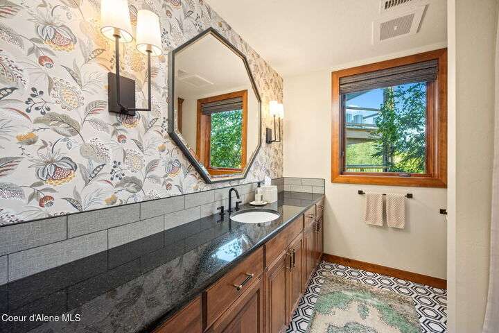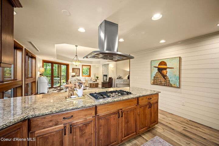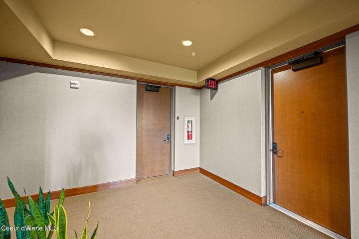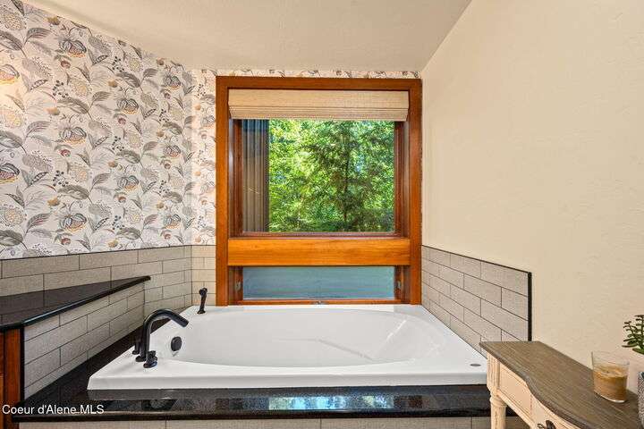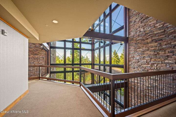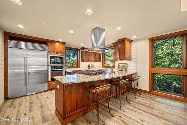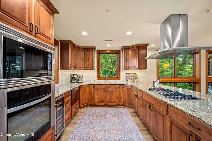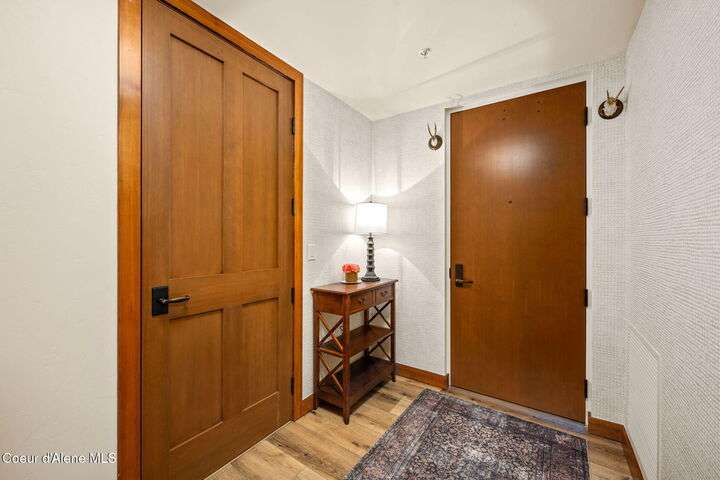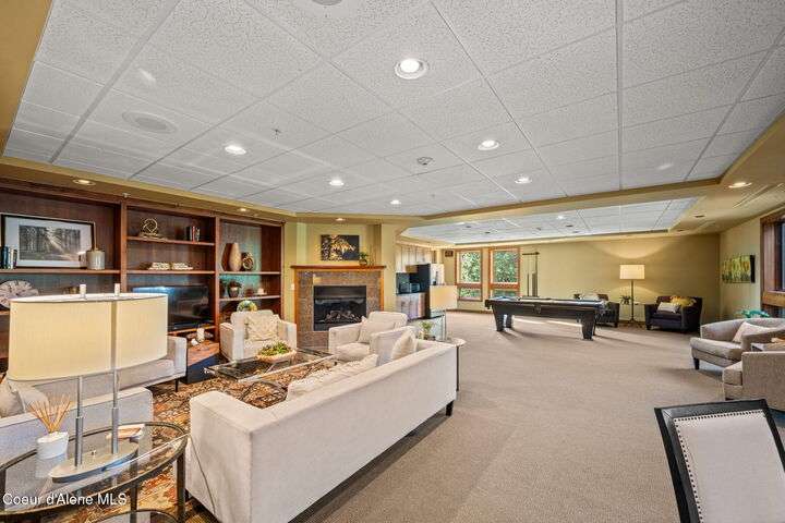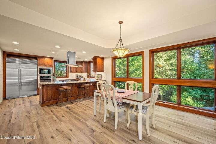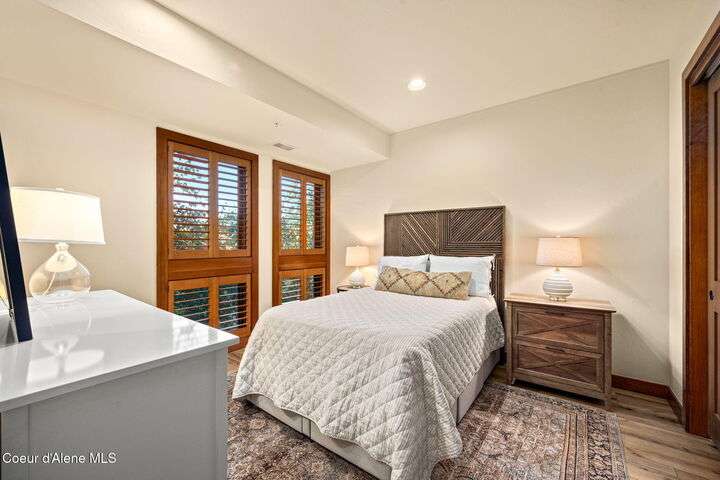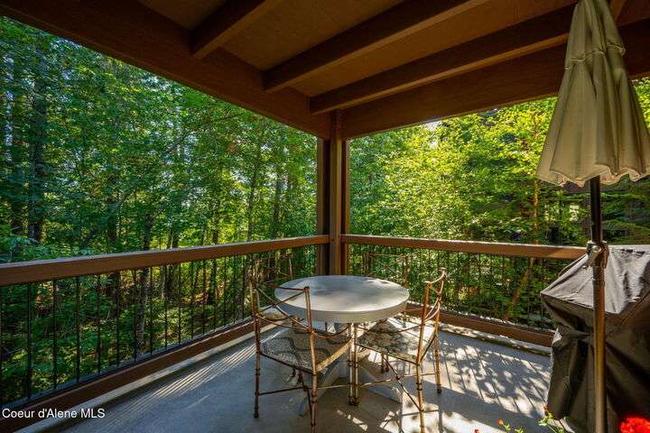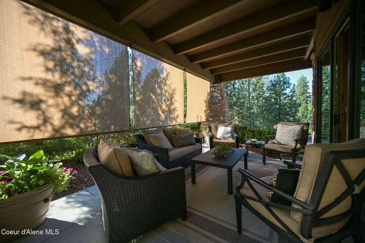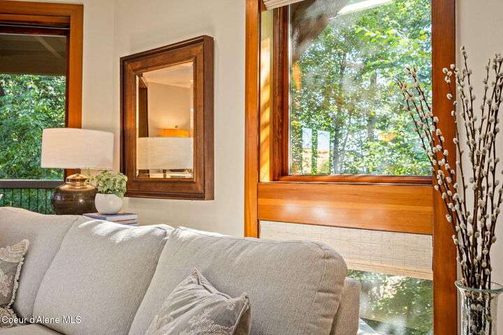 Overlooking the Sanders Beach neighborhood and Coeur d'Alene Resort golf course on a lush 10-acre hilltop is RidgePointe, a modern lodge style 6-story condominium complex only one mile from downtown Coeur d'Alene. A secure and private gated entry opens to a charming, paved road through beautifully maintained grounds with strolling wild turkeys and deer, peaceful forest and sweeping territorial views. Enjoy single story living in this newly renovated 2128 SF, 3-bedroom, 2-bathroom condo featuring waterproof LVP flooring throughout, a gourmet kitchen with Electrolux appliances, Sub Zero refrigerator & freezer, wine fridge, spacious granite countertops and eating bar. The open concept living room with gas fireplace, dining area and sliding glass doors to a large, covered deck with barbecue hookup is an entertainer's dream. A gracious master suite features a gas fireplace, large walk-in closet, en-suite bathroom with granite countertops, soaking tub with forest views, roomy tile walk- in shower and luxury Toto bidet toilet. Ample closet space, wood wrapped windows, automatic window shades, laundry room with sink, tile counters, storage cabinets and brand-new Electrolux washer and dryer. Enjoy your own private 2-car garage inside of the central security door, a fitness center with his and her locker rooms, each with wet & dry sauna, community rec-room with billiard table and deck and a private walking trail through the tranquil forest to Sanders Beach. RidgePointe offers the best of both worlds: convenient access to shopping, restaurants, and I-90 in a peaceful setting only one mile from downtown activities.