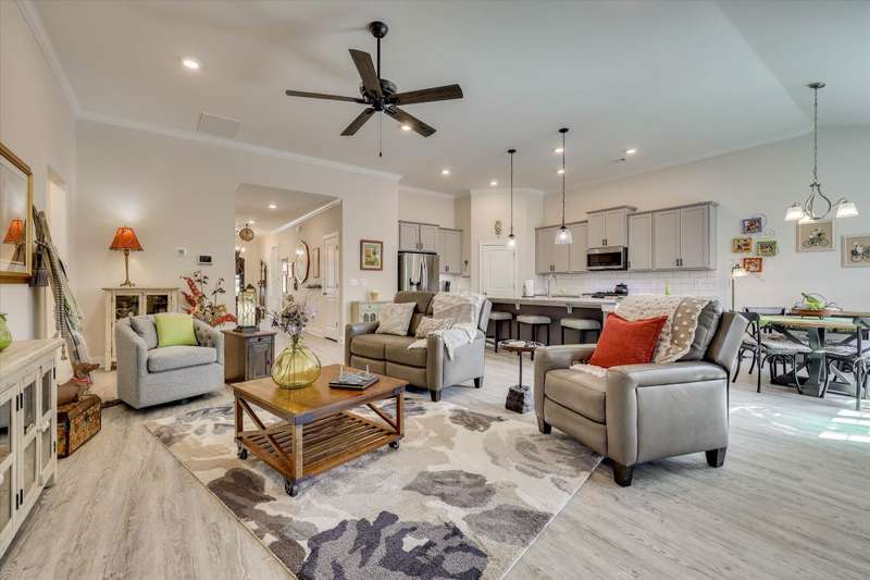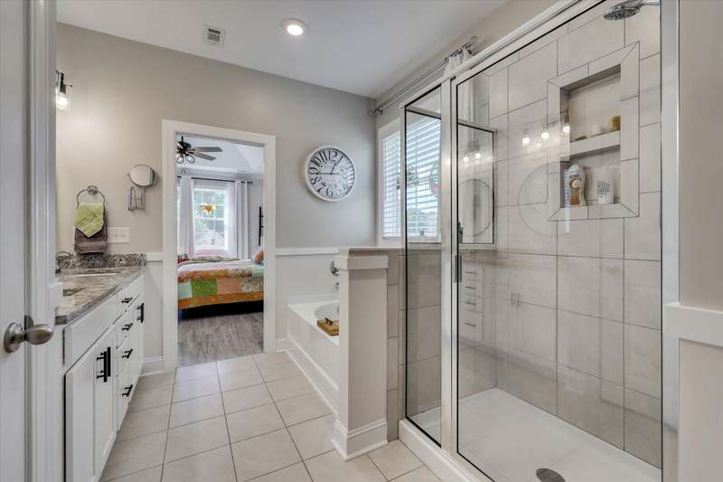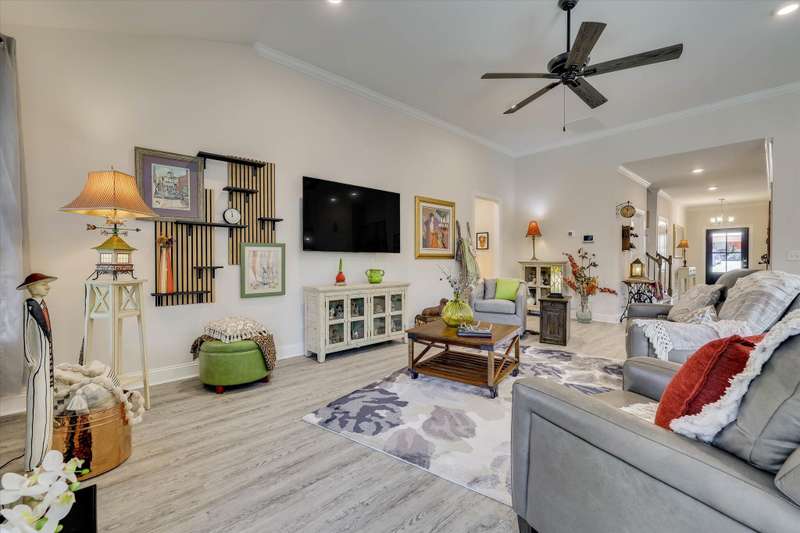 This home is a must-see! A beautiful 4 bedroom/3 bath, high-energy-efficient home located in the highly sough-after Mount Vintage Golf Community. Designed for comfort and low-maintenance living, this home features an inviting owner's suite with a luxurious soaker tub, separate shower, and dual sinks. The chef's kitchen boasts a large island with seating, ample cabinet space, and walk-in pantry, opening into a spacious Great Room complete with a cozy fireplace and built-in display shelves. The 2 car garage provides convenience and storage. Perfect for entertaining, the immaculate outdoor space includes a deck for grilling as well as an additional screened and covered patio enhanced with beautiful concrete overlay-ideal for gatherings or relaxing evenings. Mount Vintage has many amenities including a 27 hole Championship Golf Course, 6 Har-Tru clay tennis courts, bocce ball, Junior Olympic size pool, a clubhouse, The Grille, and an active social calendar.