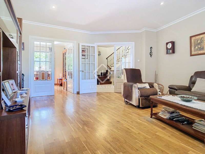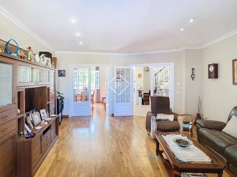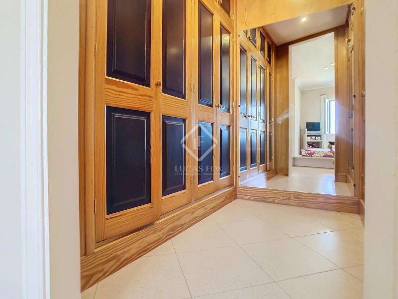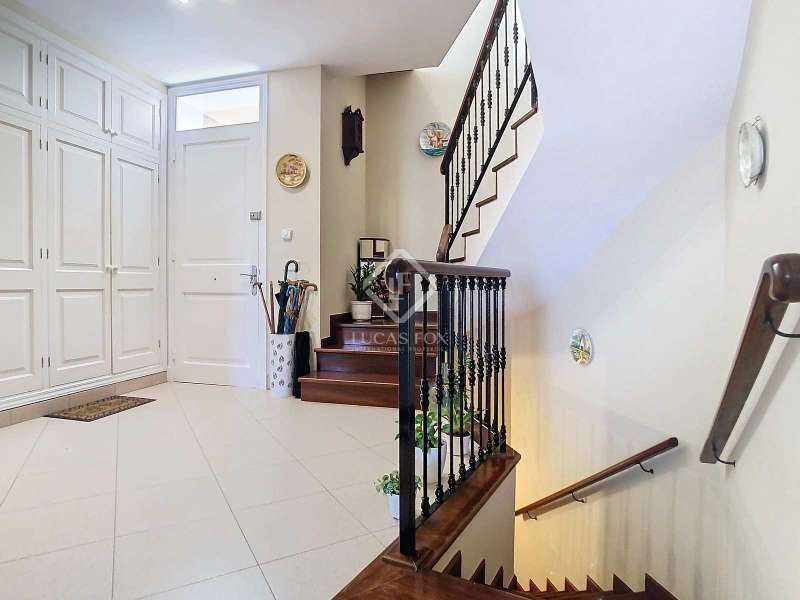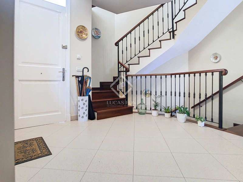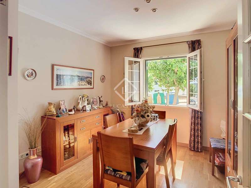 Lucas Fox presents this townhouse from 1996 that consists of 282 m² built, as well as a garden area with a 231 m² private pool very close to the centre of Maó. The property is distributed over two floors, plus the lower ground floor. The ground floor welcomes us with a beautiful entrance with access from the street. Once inside, the open entrance hall leads us to several doors and the staircase takes us to the first floor and the lower ground floor. From the entrance hall, there are different doors that take us to the large living room with separate dining room , the large fully equipped kitchen, a toilet and access to the terrace with pool, where we have access to the garage with access to a quiet square with trees behind. of the house. The internal wooden staircase also takes us to the garage with a utility room, storage room and a large bedroom or separate living room. Another staircase takes us to the first floor where we find a double bedroom with a dressing room, a private bathroom and access to a small terrace with views of the port of Maó, and two double bedrooms with built-in wardrobes, one with a dressing room and an additional bedroom , which is now enabled. as an study/small living room. Both share a large bathroom. The living room, kitchen and three upstairs bedrooms have large windows overlooking the terrace and pool at the back of the house. The house is well maintained and built with top quality materials. It has underfloor heating throughout the house, exterior carpentry with double glazing in all windows, wooden floors and tiles on the upper floor . Without a doubt, an ideal property to live in all year round or spend time with family and/or friends. Contact us for more information or to arrange a visit.