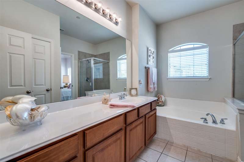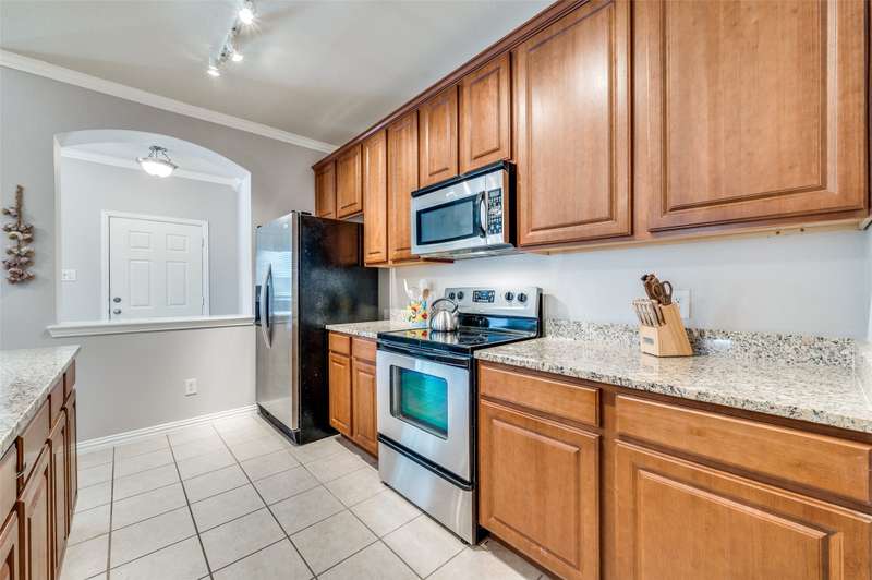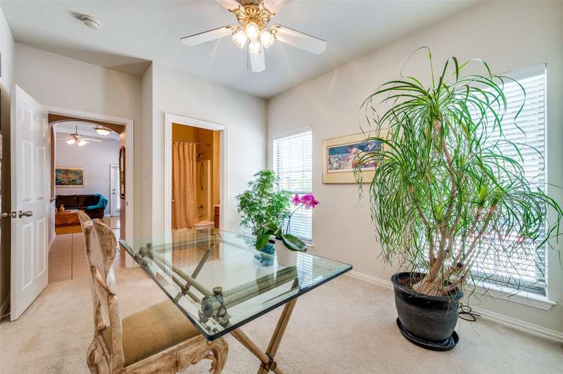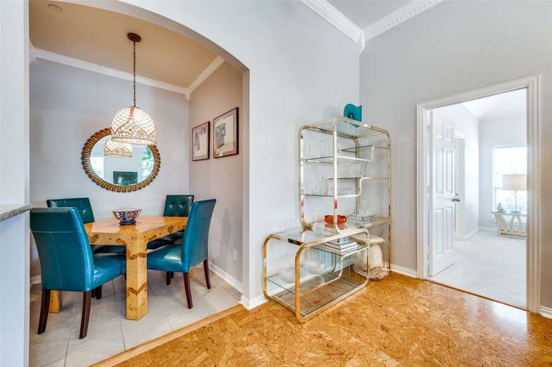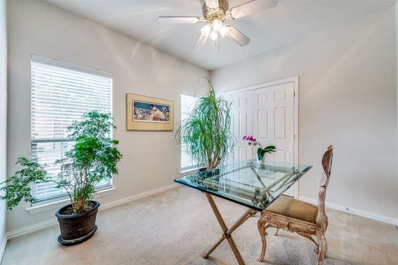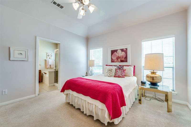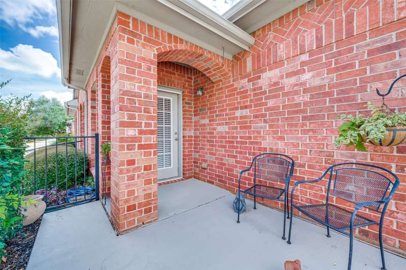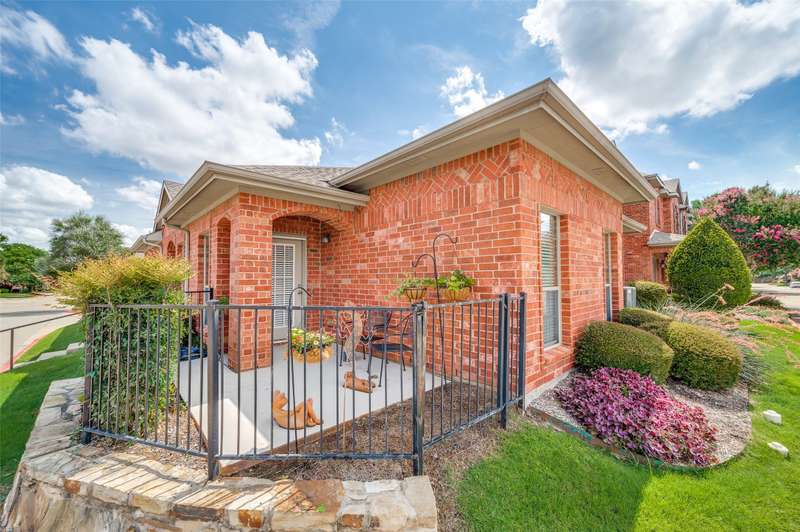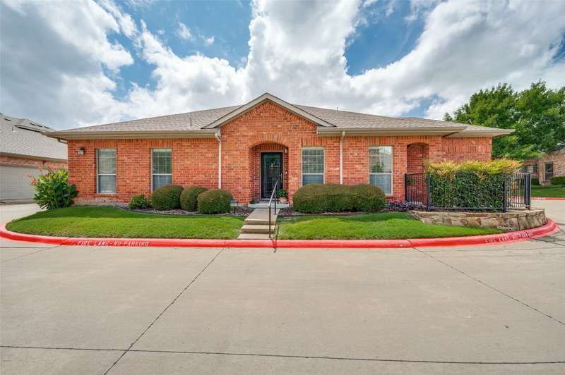 These CHARMING and CHEERY 1 STORY END unit Villas, with private patio, are not available often and are a RARE find! Dont wait! This beautiful brick home with ATTACHED 2 CAR GARAGE is nestled in the friendly and highly sought after GATED community of Villas of Westridge, and is zoned to award winning Frisco ISD schools. OPEN and FLEXIBLE floorplan featuring HIGH ceilings, crown molding, decorative lighting, art niches and ledges, neutral colors, great storage, and well placed windows with views, allowing just the right amount of natural light in! The well designed open floorplan connects the kitchen with the dining spaces, and the livingroom with side patio access, creating a welcoming atmosphere for gathering. The gourmet KITCHEN offers granite countertops, an 8 foot long granite breakfast bar, 42 inch cabinets, double sink, track lighting, 6 x 6 breakfast nook, and pantry. The kitchen flows into the spacious LIVINGROOM that enjoys 11 foot ceilings, ceiling fans, crown molding, 2 nice windows with a view, fun cork flooring, and easy access to private side patio with wrought iron fencing, gate, and stone. Patio receives morning sunlight, and evening shade, perfect! The livingroom is large enough to easily add a dining table with chairs, etc., if wanted. PRIMARY BEDROOM with ceiling fan, 2 nice windows with a view, also features an ensuite FULL BATH with garden tub, separate shower, large vanity, and a 7 x 7 closet! SECONDARY BEDROOM with ensuite FULL BATH is currently being used as an OFFICE and has a large closet, fan, and 2 nice windows with a view! This full bath has a second door so it can be easily used by guests. 2.5 x 8 LAUNDRY ROOM area for full size or stackables. HOA DUES include a blanket insurance policy covering exterior building maintenance, roof, and foundation. Also included is the maintenance of the community grounds, flower beds, front yards, sprinkler system, pest control, and security gate. AMENITIES: PRIVATE POOL, FITNESS CENTER, CLUBHOUSE