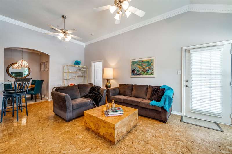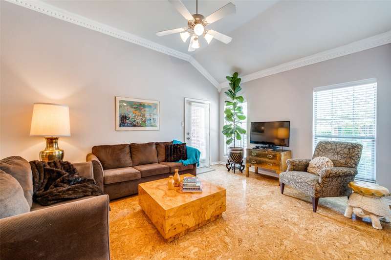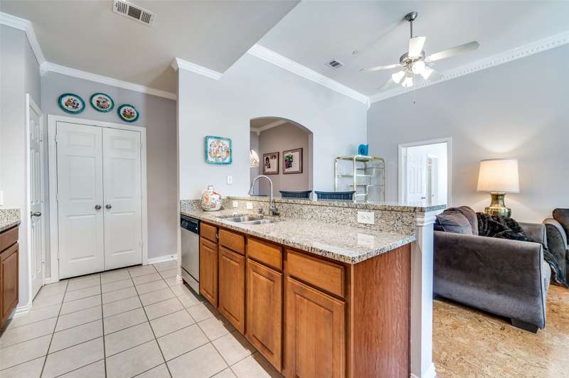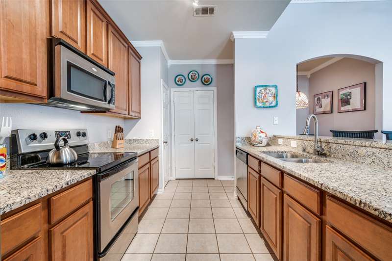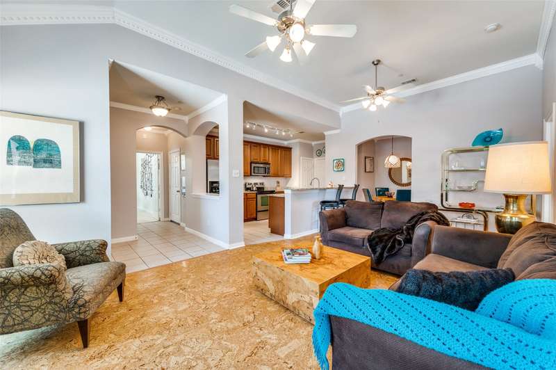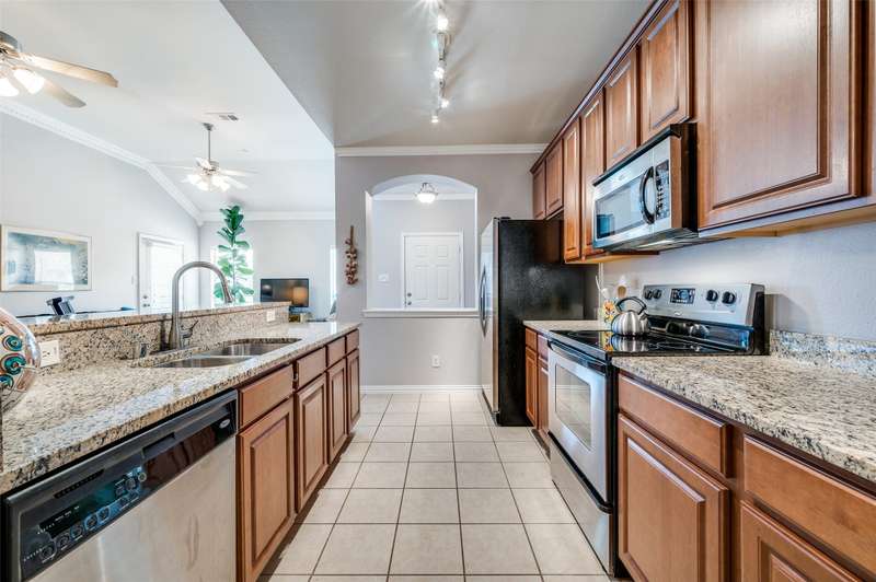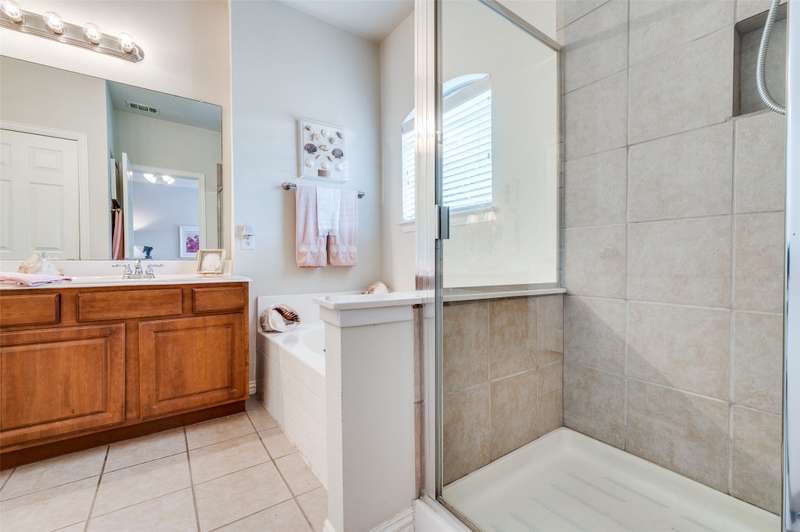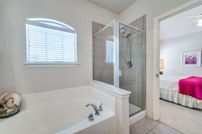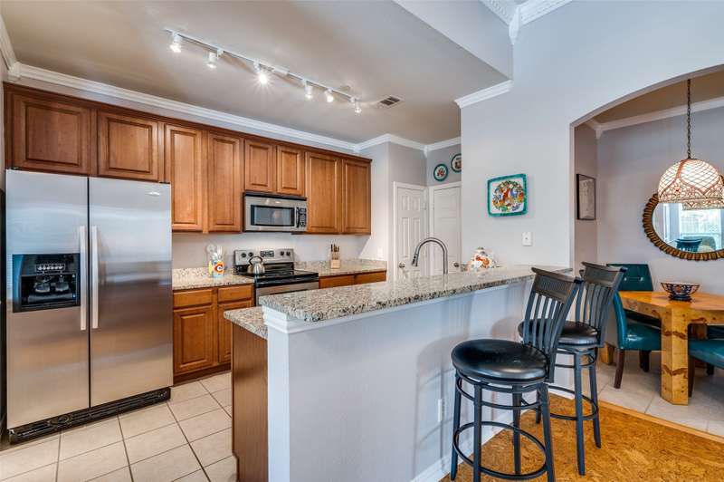 These CHARMING and CHEERY 1 STORY END unit Villas, with private patio, are not available often and are a RARE find! Dont wait! This beautiful brick home with ATTACHED 2 CAR GARAGE is nestled in the friendly and highly sought after GATED community of Villas of Westridge, and is zoned to award winning Frisco ISD schools. OPEN and FLEXIBLE floorplan featuring HIGH ceilings, crown molding, decorative lighting, art niches and ledges, neutral colors, great storage, and well placed windows with views, allowing just the right amount of natural light in! The well designed open floorplan connects the kitchen with the dining spaces, and the livingroom with side patio access, creating a welcoming atmosphere for gathering. The gourmet KITCHEN offers granite countertops, an 8 foot long granite breakfast bar, 42 inch cabinets, double sink, track lighting, 6 x 6 breakfast nook, and pantry. The kitchen flows into the spacious LIVINGROOM that enjoys 11 foot ceilings, ceiling fans, crown molding, 2 nice windows with a view, fun cork flooring, and easy access to private side patio with wrought iron fencing, gate, and stone. Patio receives morning sunlight, and evening shade, perfect! The livingroom is large enough to easily add a dining table with chairs, etc., if wanted. PRIMARY BEDROOM with ceiling fan, 2 nice windows with a view, also features an ensuite FULL BATH with garden tub, separate shower, large vanity, and a 7 x 7 closet! SECONDARY BEDROOM with ensuite FULL BATH is currently being used as an OFFICE and has a large closet, fan, and 2 nice windows with a view! This full bath has a second door so it can be easily used by guests. 2.5 x 8 LAUNDRY ROOM area for full size or stackables. HOA DUES include a blanket insurance policy covering exterior building maintenance, roof, and foundation. Also included is the maintenance of the community grounds, flower beds, front yards, sprinkler system, pest control, and security gate. AMENITIES: PRIVATE POOL, FITNESS CENTER, CLUBHOUSE
