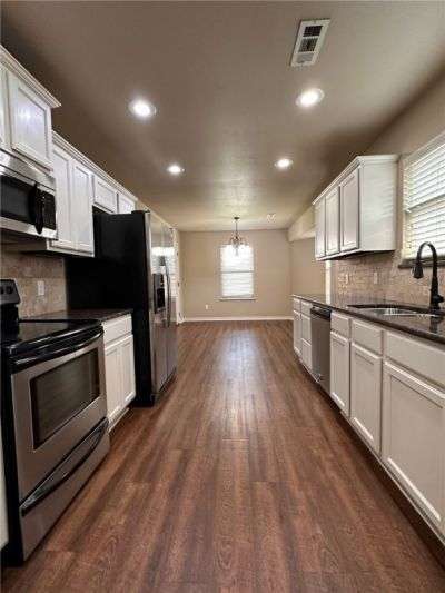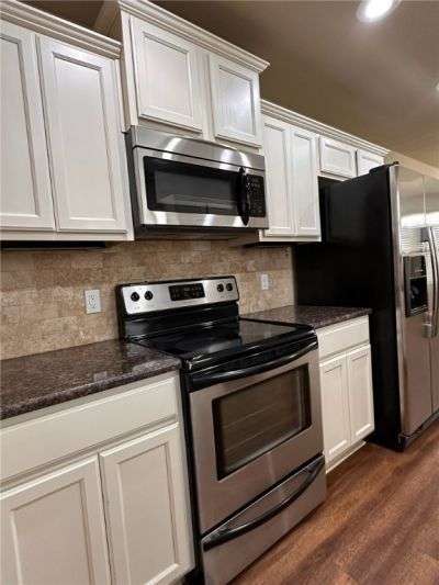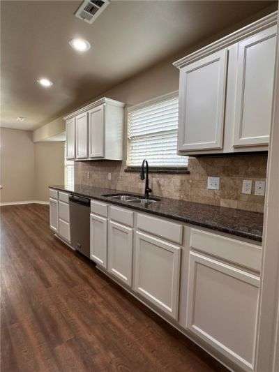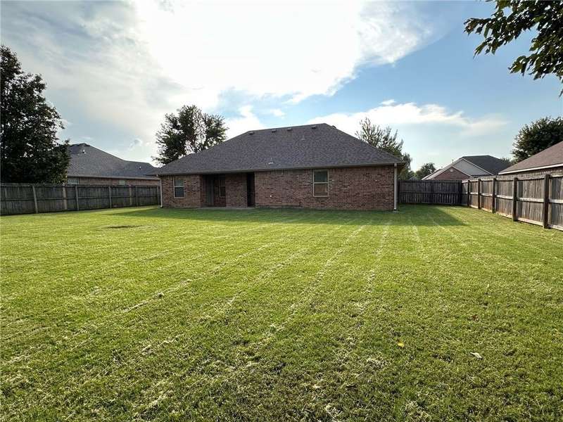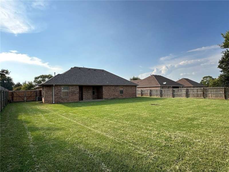 Check out this 3 BR 2 BA 2 CG all brick home featuring an efficient layout with ample closet and storage space. HUGE, fully fenced backyard - perfect for pets, play, or entertaining. Galley kitchen with 3 cm granite countertops, dining area, and utility room with pantry shelving. Primary suite includes a generous walk-in closet and en-suite bath with dual vanities. Enjoy low-maintenance vinyl flooring throughout. Roof replaced Summer 2020. A comfortable and functional home ready for move-in!