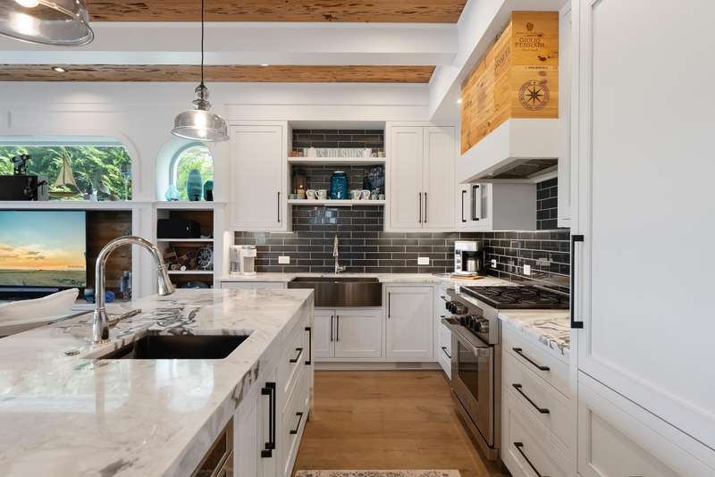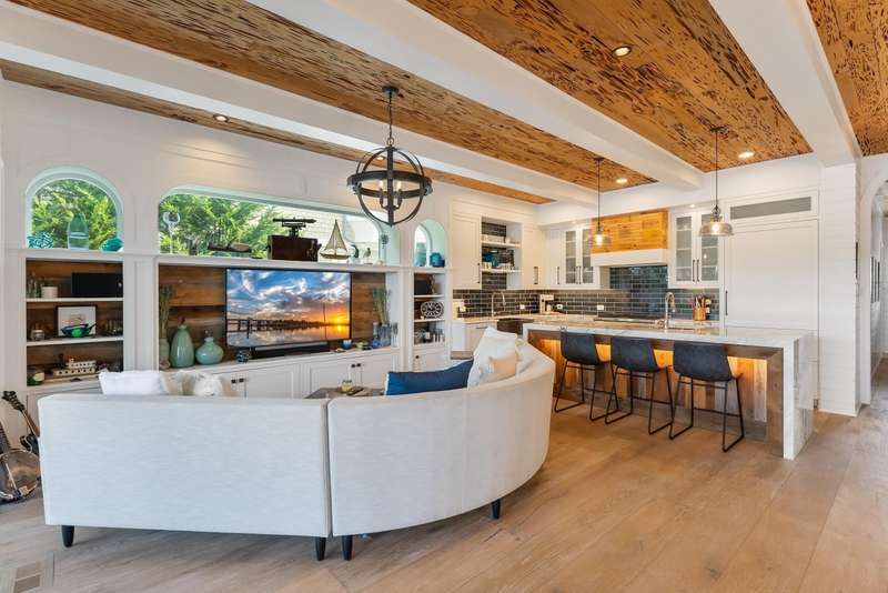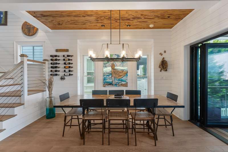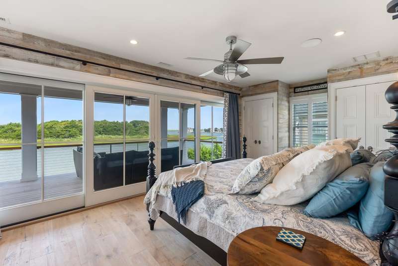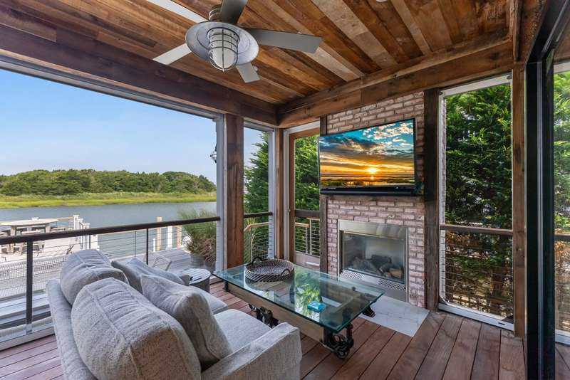STONE HARBOR BAYFRONT LIVING AT IT'S BEST! Vino Su l'acqua (""Wine on the Water"") - Coastal Elegance Meets Bayfront Luxury. Welcome to Vino su l'acqua, a name that perfectly captures the essence of this peaceful, luxurious escape fabulous unobstructed views of the bay, wetlands and waterfowl habitat. This well thought out home was designed by the architectural firm of Asher Slaunwhite with much influence from Mark Asher. The home was constructed by renowned custom builder D.L. Minor and is positioned gracefully on a premier, quiet street, offering the ultimate in privacy, design, and waterfront living. From the moment you enter, you're greeted by masterful design and craftsmanship, including gorgeous, reclaimed wood accents and custom millwork throughout the home, pecky cypress wood and beamed ceilings, engineered wide plank hardwood floors, and thoughtfully curated high-end finishes throughout. The second-floor primary suite spans the full width of the home, offering breathtaking panoramic bay views through an oversized sliding glass door leading to a massive, covered deck-complete with a private wet bar and Sub-Zero wine fridge, perfect for sipping wine on the water. The spa-inspired en-suite bathroom features dual sinks, a custom open vanity, shower/tub combination with a rain head, barn-style glass doors, separate water closet, and custom open shelving. Additional interior features include a spacious custom bunk room with built-in storage, custom built-in cabinetry framed by large picture windows for abundant natural light, striking iron and wood pantry doors, and a designer kitchen with top-tier paneled appliances, multiple sinks, a cascading waterfall island with refrigerator drawers, a custom hood vent, and a luxury glass tile backsplash. The rooftop deck offers sweeping, elevated views of the bay and intracoastal waterway and serves as a true private oasis. An integrated alarm system offers peace of mind. Indoor-outdoor living is elevated by a show-stopping NanoWall that seamlessly opens the interior to an expansive screened-in porch with a brick gas fireplace, automatic hurricane shutters, and motorized screens-blurring the lines between indoor comfort and outdoor serenity. Step onto the one-level bayfront deck, adorned with elegant outdoor lighting, leading to a custom ramp and floating dock with two private boat slips-perfect for fishing, boating, or simply soaking in the sunsets. Smart home features include a fully integrated Control4 Smart Home System that has sonos speakers in every room can be operated from your phone via app with fully customizable remote access. The system controls deck screens and shutters, climate (heating and AC), lighting, and music in every room of the home-including the front porch, back porch, and outdoor deck-with seamless efficiency using Lutron lighting and intuitive design. After a day on the water, rinse off in your own luxurious brick-walled outdoor shower-a private, elegant touch that enhances your coastal lifestyle. Additional features include a welcoming full front porch, two off-street parking spaces, and built-in wine moments around every corner-fitting for the home's namesake. Vino Su l'axqua is not somply a home-it's a lifestyle on the water, where every detail is a testament to thoughtful design, timeless quality, and refined coastal living. Don't miss the opportunity to own Vino Su l'acqua, your own personal paradise-a true waterfront sanctuary where luxury meets tranquility, and every sunset is a masterpiece.