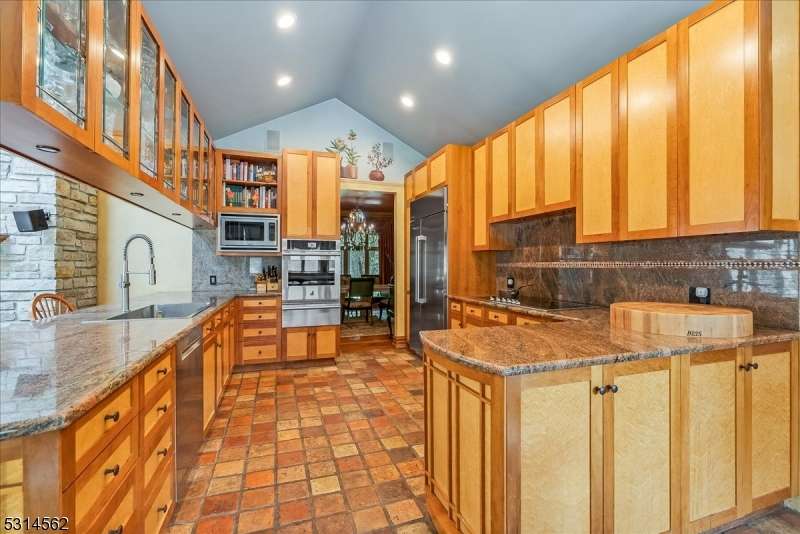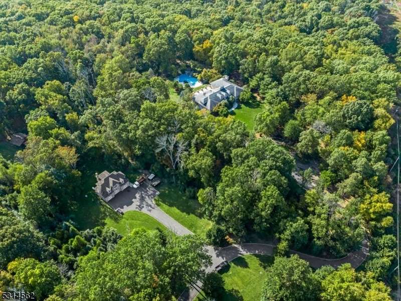 Special Country Estate bordering miles of trails on a quiet street. Builder's own home packed with quality plus an exquisite 2 BR Carriage House. Beautiful landscaped approach with its massive gates and long paved driveway with lighting. Amazing gunite heated pool with waterfalls, hot tub and waterslide! Tree house nestled in the woods with electric. 4 br, 4.2 ba main house including a spacious primary suite with a FPL, walk in closet and marble bath. Inviting FR with high ceilings, skylights, a soaring wall of stone and Fireplace. French doors lead you out to an elevated stone patio and private, nicely landscaped yard. An entertainer's dream! The open kitchen has custom cabinetry, salvaged 200 yr old floors, breakfast bar and nook. Radiant heat, custom oak doors and trim throughout. Enormous basement boasts a wine cellar, half bath and workout room. 700 amp electric svc with generator, 6+ oversized garages, 3 wells, one for irrigation. Peaceful and private one hour from Manhattan!