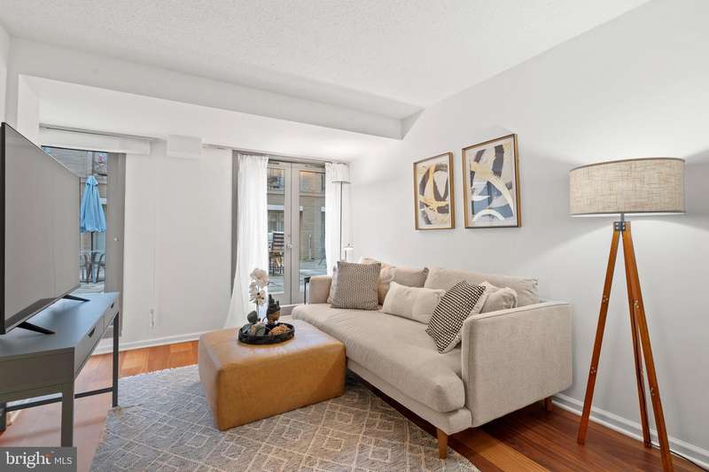 Welcome to The Residences at Market Square! This is a exceptional opportunity to have an urban oasis in bustling Penn Quarter! There are unbelievable views of DC from the shared rooftop including the Capitol and Monument. The expansive rooftop also sports a pool, gas grills, seating and mature plantings. A unique feature of the property is that it is one of only a few homes that have access to a secluded interior courtyard, creating a seamless indoor-outdoor living experience. Whether you're enjoying breakfast, lunch, dinner, or simply relaxing with a book or soaking up the sun, the courtyard feels like a natural extension of your home. The condo is filled with light from floor to ceiling windows and doors. It offers a terrific newer kitchen with a great layout, bar, SS appliances, neutral counters and cabinets. The unit has large dual closets, washer/dryer and an updated bathroom. There is additional storage. The Residences are a full service building, loaded with amenities: pool, 24hr concierge, shared rooftop gas grills, fitness center with upscale workout equipment. The coveted Penn Quarter neighborhood offers world-class restaurants, shopping, proximity to museums, the National Mall and metro!