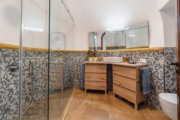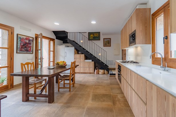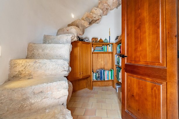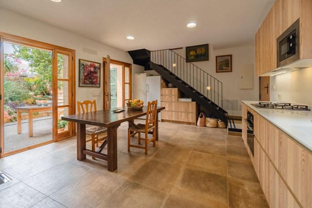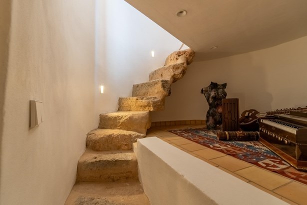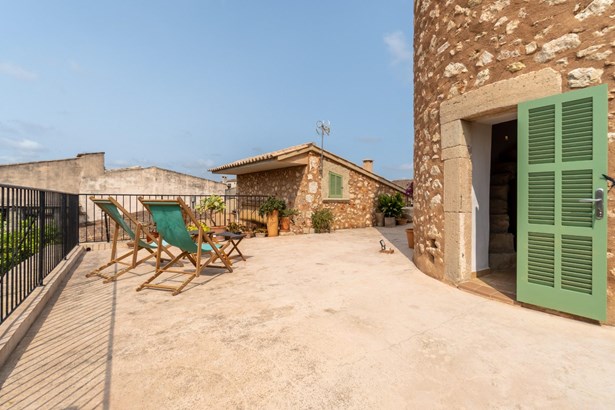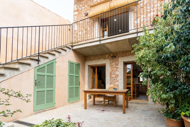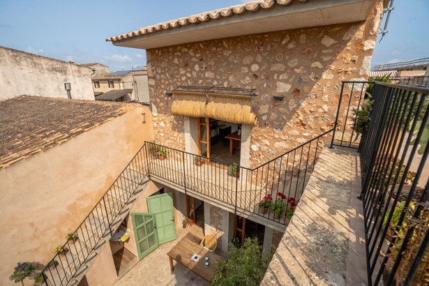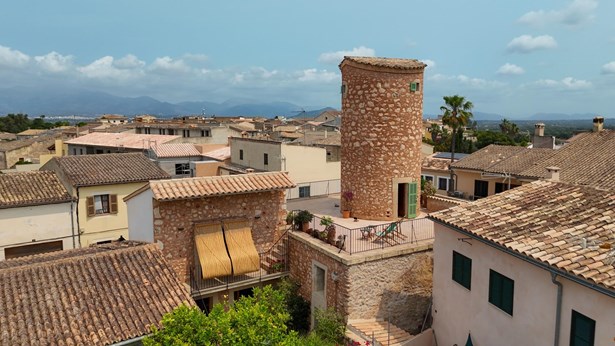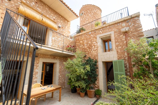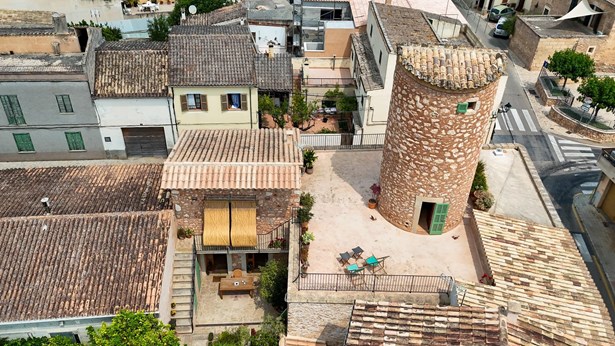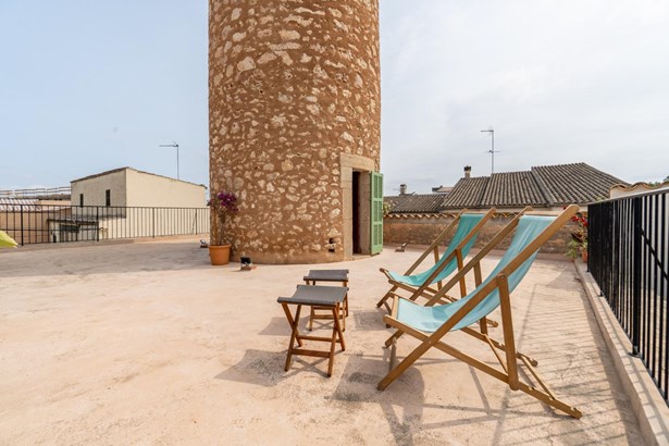 Located in the heart of Costitx, this unique property includes one of the town’s five officially listed historic windmills, with over 250 years of history. Originally built in the 19th century for agricultural purposes, the windmill was fully renovated in 2023, including the interior of the tower, preserving its heritage value and original elements such as stone walls, vaulted ceilings, traditional windows, and the protected stone staircase. Costitx offers all basic services, good road connections, and a strategic location in central Mallorca.~~The home successfully combines tradition and modern comfort. It offers 124 m² on the ground floor and 64 m² on the upper floor. It includes three bedrooms: a double with en-suite bathroom, another double with mezzanine-dressing room, and a single bedroom that can also be used as an office. The living room, kitchen, and dining area all open directly to the 45 m² patio, as does the master bedroom.~~Outdoors, the property features a landscaped patio and a 70 m² terrace located at the top of the windmill, offering open views of the village, the Serra de Tramuntana, and on clear days, even Alcudia and Formentor. There is also an exterior toilet, laundry room, and two independent street entrances.~~The property is delivered with architectural plans, a certificate of occupancy, and a completion certificate.