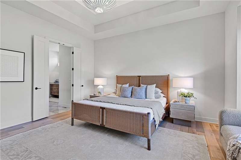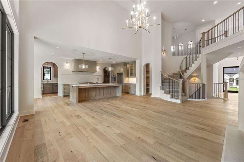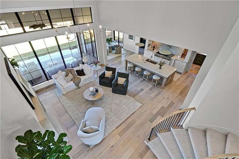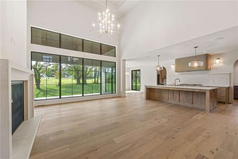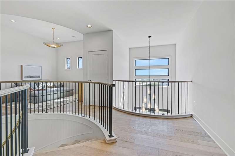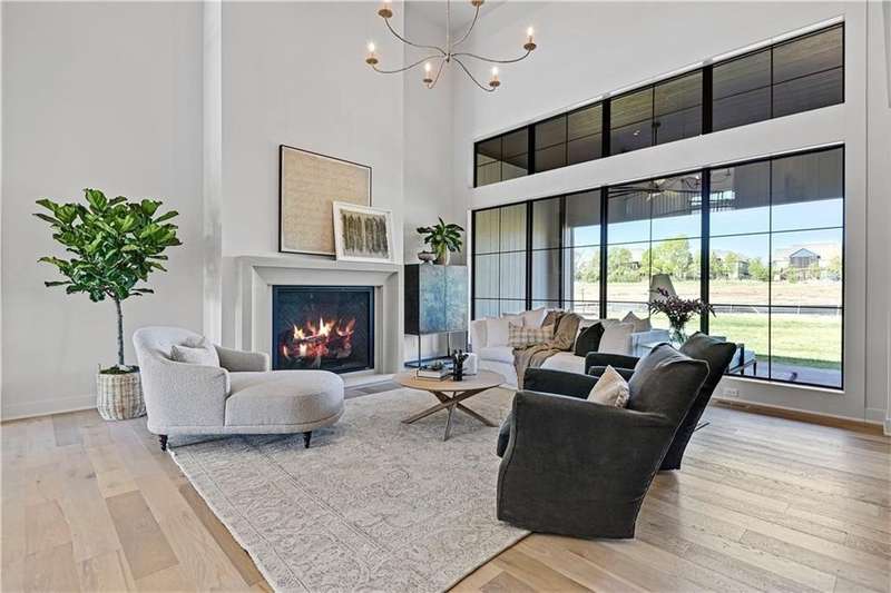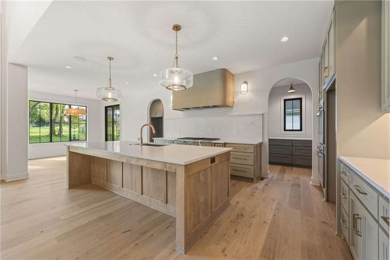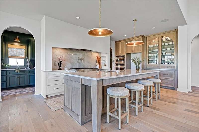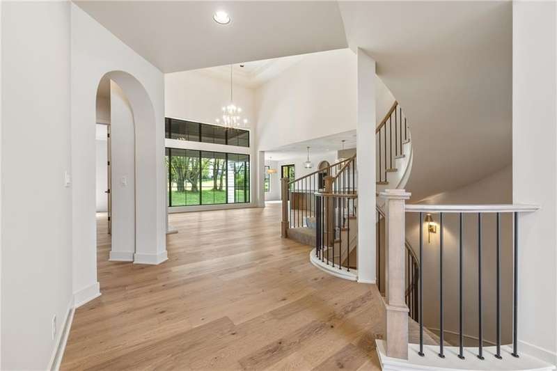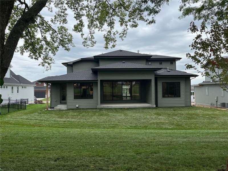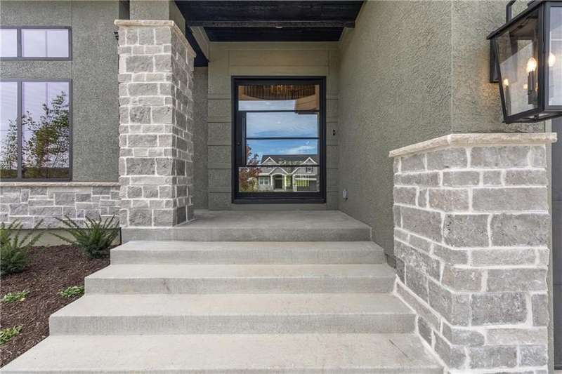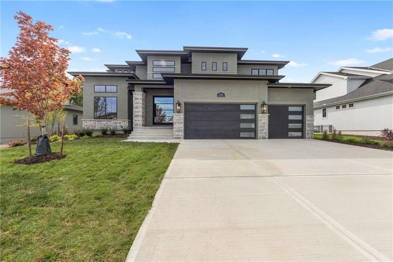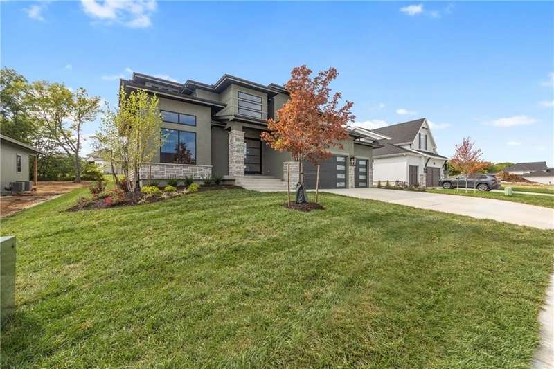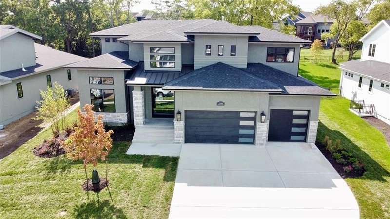 The stunning Roosevelt 1.5 Story by Bickimer is READY FOR MOVE IN on Lot 210 backing to green space with large trees. A truly unique floor plan and so many reasons to fall in love with this home. Features include: Curved open staircase, huge oversized modern black and clear glass front door that pivots open, premium RHINO black windows, long mud hall with door to the back yard, prep pantry hallway, main floor office, stunning kitchen with drop in Thermador range with griddle, upgraded curved wood vent hood, upstairs loft, reading nook, atrium style dinning room with large windows. This plan is a unique layout with grand two story great room with cast concrete fireplace and wood accent ceiling beams. Unique mud room hallway that passes through the pantry with a door out to 7' X 7' grill patio. Optional finished basement can be added with wet bar and stunning mid century modern TV accent feature wall with wood panels as photos from previous model home. All situated on a level lot with patio slider doors to a 12' X 19' covered patio to enjoy your back yard BBQ's and events with ease from the main level. Stucco exterior with real stone trim. Century Farms has a beautiful club house with fitness center and reading loft, pool with slide and fire pit, pickleball courts, kids play area and community garden. Come join the fun in Century Farms, a unique one of a kind upscale community in Overland Park. BLUE VALLEY SCHOOLS *Some photos are from a previous model home*