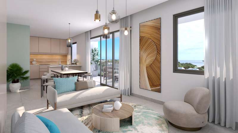 Seize the opportunity to acquire the latest 2-bedroom flat in the exclusive Cosy Bay development, ideally located in Tamarin on the west coast of Mauritius. This 116 m² flat, with no decor pack, gives you total freedom to personalise your space to suit your tastes and desires. Designed with generous, light-filled living spaces, this flat has a vast living room opening onto a modern kitchen, creating a convivial space perfect for entertaining. The three bedrooms, including a master suite with en suite bathroom, are spacious and bathed in natural light, providing a comfortable and elegant living environment. A large terrace invites you to enjoy the tropical climate and the breathtaking views over the verdant surroundings. With its meticulous finishes and privileged location close to the beach, shops and amenities, this flat is an ideal choice for a primary residence or rental investment in one of the most sought-after areas of Mauritius. Cosy Bay offers a selection of elegant, well-appointed flats, ideal for those seeking comfort and exoticism. Each flat is designed to meet the needs of those seeking both modern comfort and island charm. They range in size from 44 to 149 m², and the 1 to 3 bedroom flats offer privacy and a relaxing haven personalised to each owner or tenant. Generous terraces let you take full advantage of the sunny climate and breathtaking views. The Cosy Bay residence has been designed to enhance your daily well-being, with top-quality amenities. A landscaped garden and communal swimming pool provide a green space in which to relax and recharge your batteries, while underground parking optimises the landscaped areas and offers greater comfort and security. The Cosy Bay project in Tamarin is an exceptional property investment opportunity, offering a high potential rental return. Managed by LOV, a leading hotel management company specialising in short and long term leasing of coastal properties in Mauritius, this project guarantees professional and carefree management of your property.This turnkey service allows you to optimise your investment, while guaranteeing an excellent return, whether for short or long-term rentals.