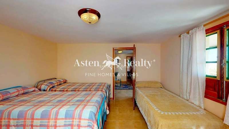 There is no urban electricity supply in this area, so all the properties there use private power generators and receive water from tankers. In the courtyard is an underground tank with a capacity of 15 000 liters of water, which lasts for about two months. Telephone, internet and satellite TV work fine. The house has gardens and a pleasant barbecue area with direct views of the Teide. The annual property tax is only €104.