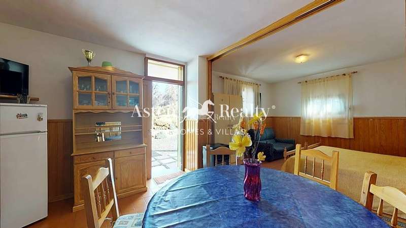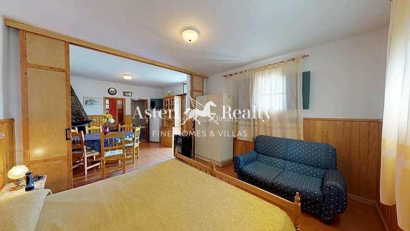 The property is divided on two levels as follows: On the ground floor there is a bedroom, a small living room, a kitchen, a complete bathroom and a fireplace. Upstairs there are two bedrooms, a toilet and a glazed balcony.