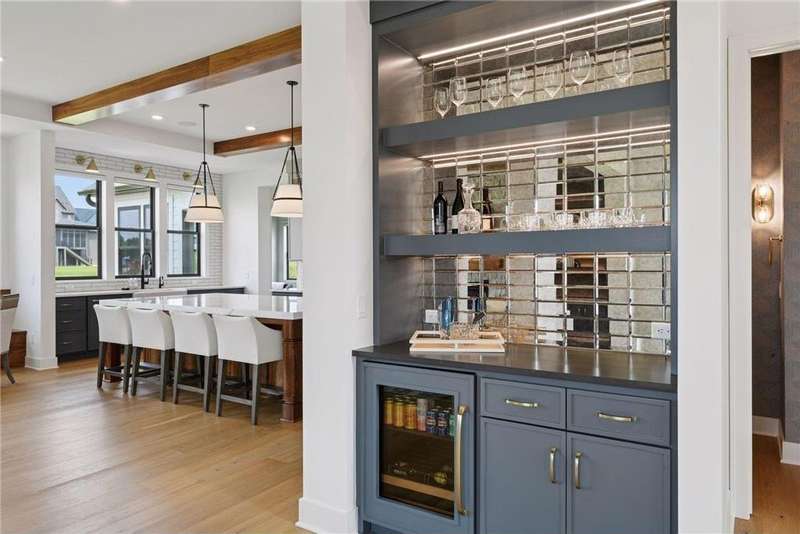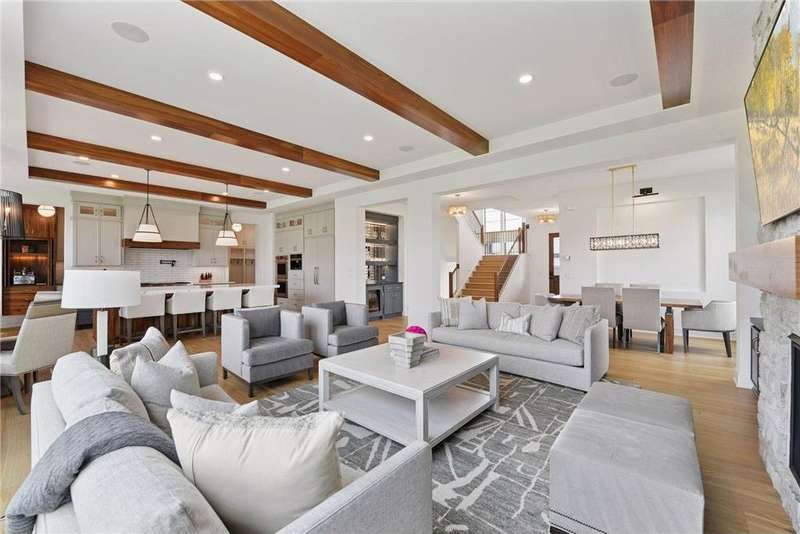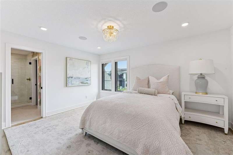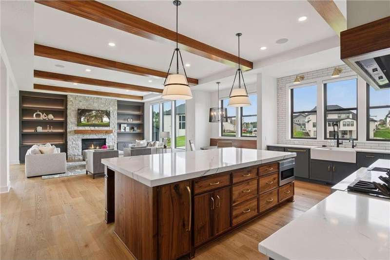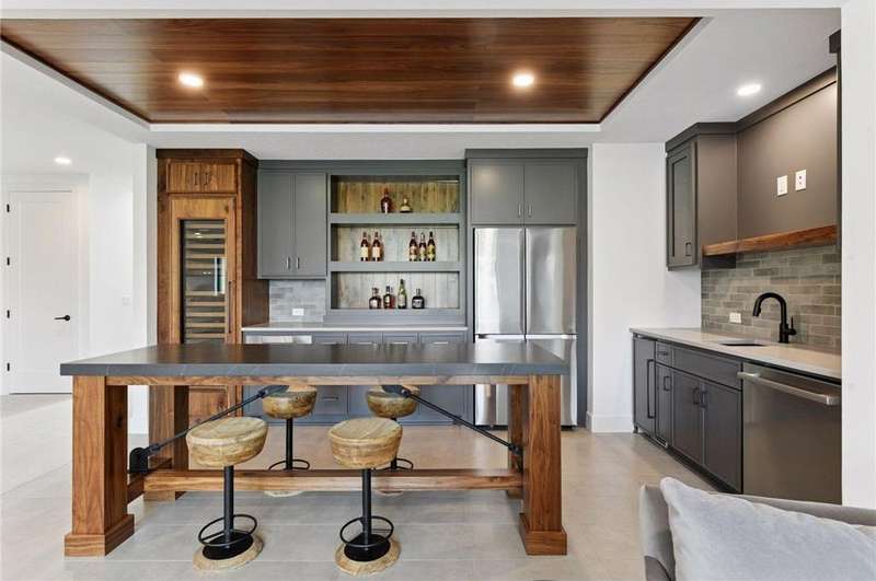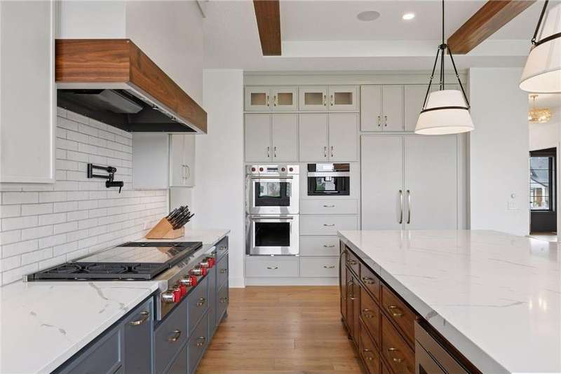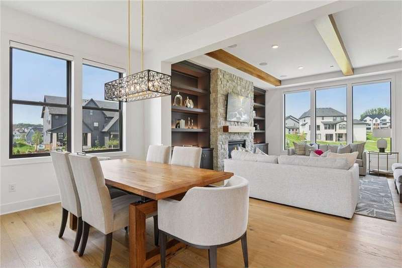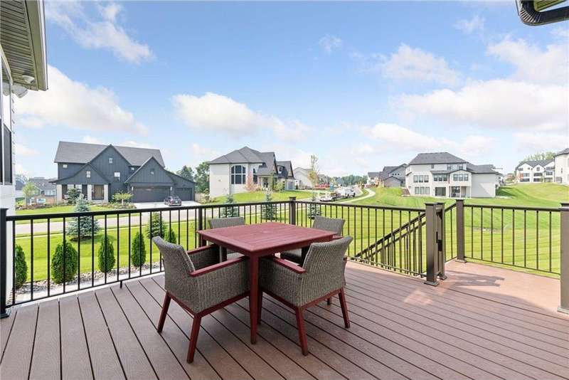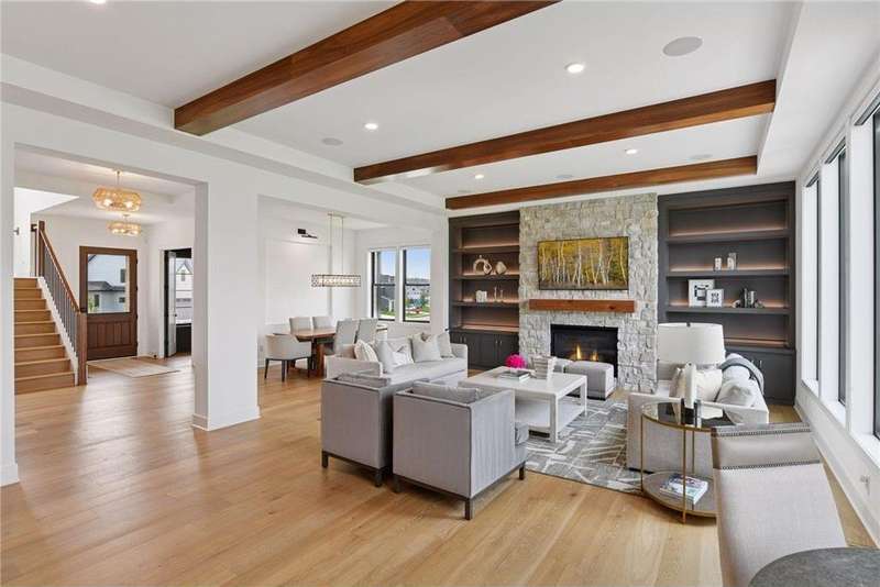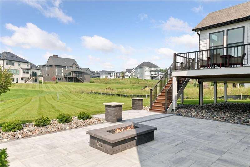 Welcome to this exceptional 2024 built home by Hanson Builders, perfectly situated on a peaceful corner lot in the sought-after Hollydale community—part of the award winning Wayzata School District. From the moment you arrive, the home’s curb appeal impresses featuring rich wood accents, stone details and James Hardie cement board siding. The beautifully landscaped yard includes a Trex deck, paver patio, and gas fire pit—ideal for outdoor entertaining. Step inside to a bright and airy main level designed with 10’ ceilings, walnut ceiling beams, and floor-to-ceiling brown Pella Impervia windows that flood the space with natural light. The open concept layout is both elegant and functional. The chef’s kitchen is a true showstopper, anchored by a 10’ island and thoughtfully appointed with a Wolf range flanked by custom cabinetry, a paneled Dacor refrigerator and freezer, built-in Miele coffee maker, under-counter ice maker, and a stylish sink placed along the exterior wall. Just behind the kitchen, the walk-through pantry reveals even more luxury, featuring a coffee station and a Dacor wine dispenser. Adjacent to the kitchen, the vaulted hearth room offers a cozy retreat with a floor-to-ceiling stone fireplace and heated tile floors—perfect for Minnesota winters. Upstairs, you'll find four spacious bedroom suites, each with its own walk-in closet. The private Owner’s Suite boasts a spa-like bath with a large walk-in tile shower, fogless mirror, and heated towel bar for ultimate comfort. The fully finished lower level is built for entertainment and wellness, offering a Sport Center, Exercise Room, wet bar, and an additional bedroom. The heated, insulated garage includes floor drains, central vacuum, ample storage, and epoxy floors—designed for year-round convenience. Additional features include Toto Washlet toilets throughout, whole-house Lutron lighting, a built-in speaker system, and more! quick access to Hollydale’s exclusive community amenities: pool, clubhouse, pickle ball court and playground. This home is a rare blend of craftsmanship, luxury, and lifestyle. A must-see!
