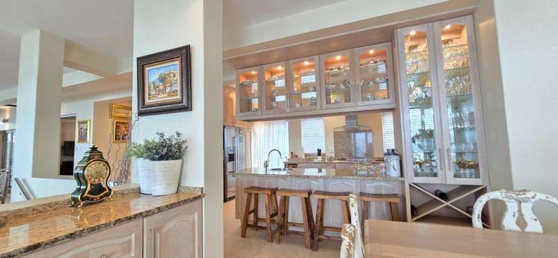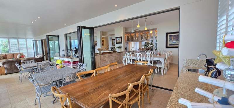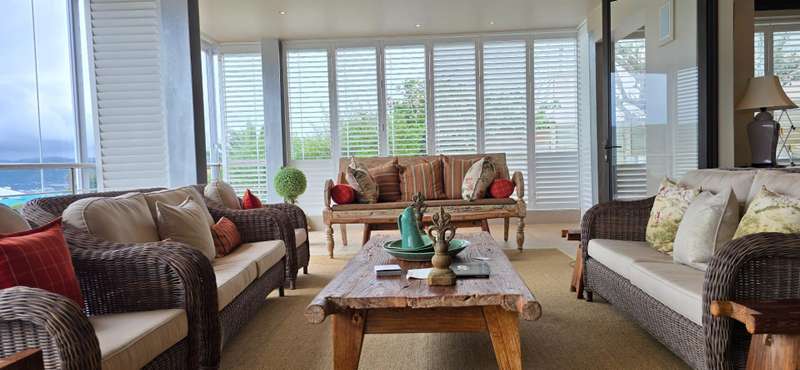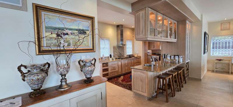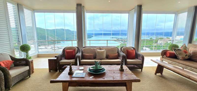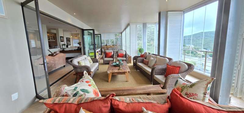The property features beautifully designed bedrooms, each blending comfort with functionality to ensure a restful environment. On the ground floor, one bedroom benefits from a full en-suite bathroom, perfect for guests or family members preferring easy access. The upper level houses three more bedrooms, enhancing privacy and providing versatile living options. The master suite is particularly impressive, boasting a spacious private veranda, a large dressing room, and a luxurious en-suite bathroom. The second bedroom also features a full en-suite bathroom, while the third bedroom has access to a separate bathroom equipped with a shower. The home is designed with a flowing open-plan layout that maximizes the stunning lagoon views and creates a seamless transition between living spaces. The formal lounge, set against the backdrop of the lagoon, leads into a dining area that connects directly to a well-equipped kitchen featuring both gas and electric hobs, an eye-level oven, and a separate scullery. Adjacent to this space is a cozy TV lounge and a dedicated study, providing ample room for relaxation and work. A double garage with direct access into the house adds convenience and security. This property is not just a house but a blend of luxury, comfort, and stunning views, making it a must-see for those seeking an exceptional home in Knysna. Call today to schedule a viewing and experience the splendor first-hand! This home comes with the option of being Furnished.