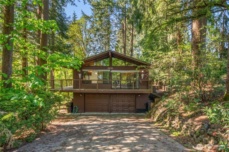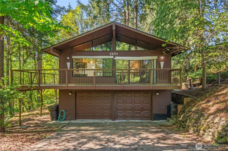 Pristine Northwest Contemporary Home in a Magical Wooded Setting! Beautiful home boasting 2,106 SF, 3bdrms, 3 bthrms, Great Room w/cedar tongue and groove vaulted ceilings-wall of light filled windows, frml living rm w/wood FP & sliders to wrap around viewing deck, dining rm w/large windows to take in the serene wooded views, kitchen w/vaulted ceiling-LVP flooring-all appliances-slider to side viewing deck, spiral staircase to large lower level family rm w/wet bar-wood FP w/insert-slider to lower covered patio & a private wooded sanctuary, spacious laundry room & oversized 594 SF garage. The wooded grounds offer an additional .20 acre parcel, flower beds and an incredible "Sea of Trees" view! The home is located minutes to Longview & Kelso.
