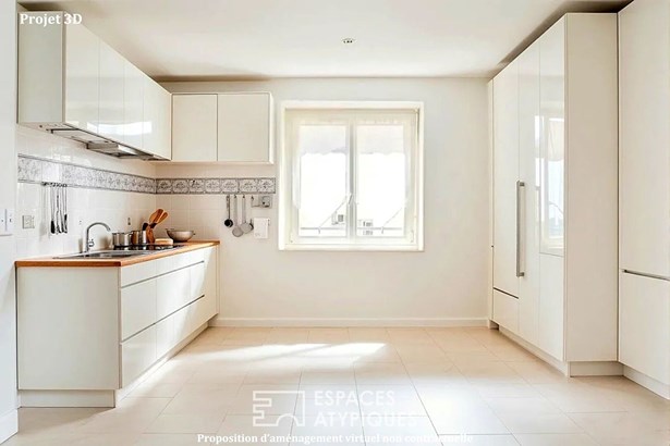 Facing east-west, the apartment is bathed in light. On the day side, the entrance leads to a living room combining a living/dining room and a fitted and separate kitchen.