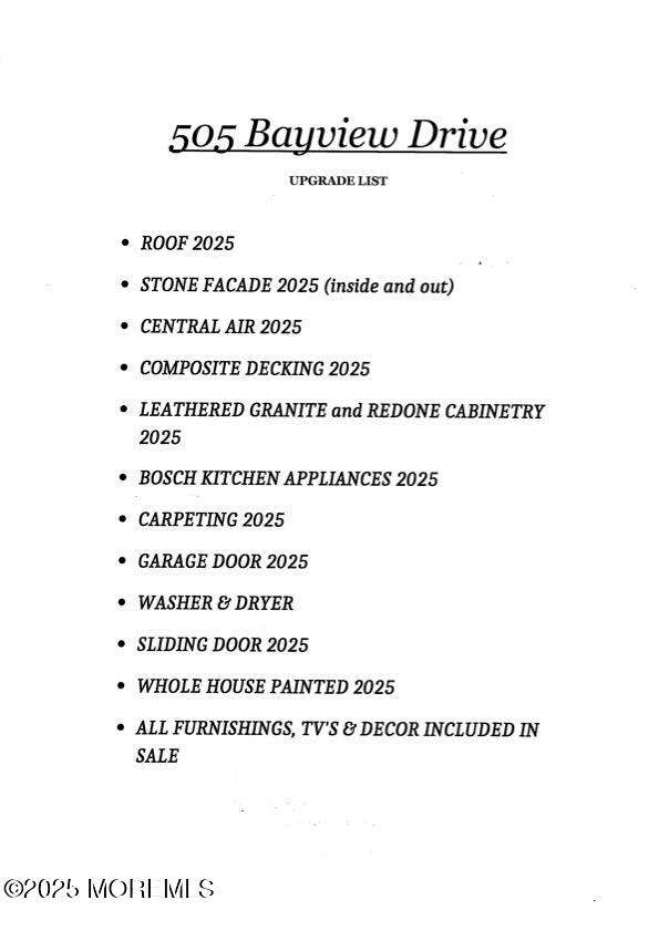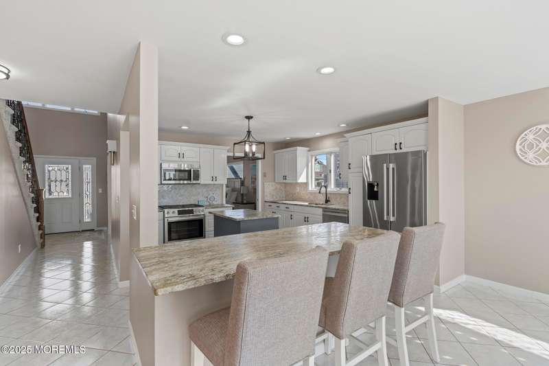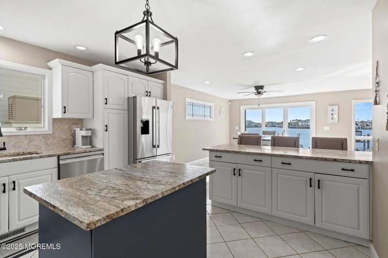 Spectacular Green Island Bayfront Retreat with Private Pier, Expansive Deck w/Unobstructed, Panoramic views of Barnegat Bay. Welcome to your dream coastal getaway! This beautiful bayfront home offers nearly 3000sq.ft. of beautifully updated living space, featuring 4 spacious bedrooms including a first-floor bedroom and 3 full baths. Soaring ceilings and abundant natural light accentuate the open layout, leading to a stunning 3rd floor family room with sweeping views of the bay. Open kitchen features newly installed modern, high-end Bosch Appliances, Beautiful Cabinetry and Leathered Granite Counters which opens to the dining and living room complete with stone facade, gas fireplace and an abundance of windows showcasing the water views. Many upgrades, inc. kitchen, roof, central air, sliding door, garage door, washer, dryer and carpets all done in 2025. Also new in 2025, composite decking, and boat and jet-ski lifts. Tasteful new furnishings included to complete this package and make it truly turn-key! Whether you're enjoying your morning coffee with a sunrise over the bay or hosting guests on the waterfront deck, this home offers the perfect backdrop for making memories. Don't miss this chance to own a slice of paradise with all the right updates already done. Schedule your private showing today and escape city life at the Beautiful Jersey Shore!