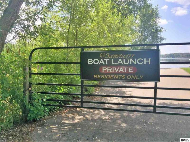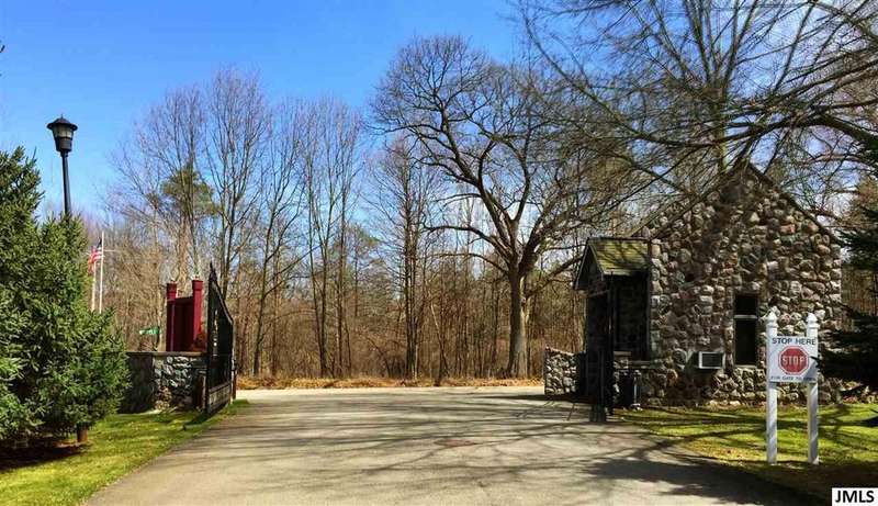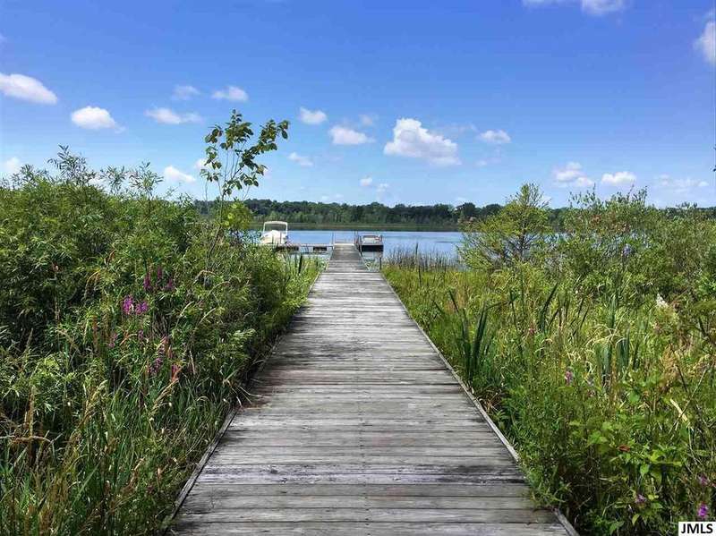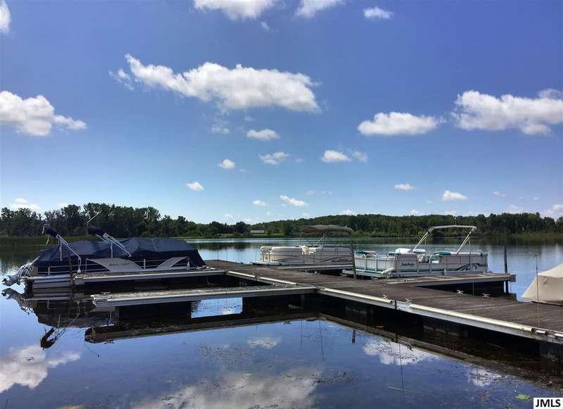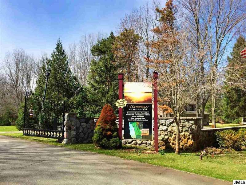All sports Brill's lake picturesque 2.16 acre wooded lakefront lot. 125 feet of lake frontage in a beautiful, peaceful and gated community. The 140 acre subdivision has street lights, paved roads, walking trails and a community dock on an all sports lake. Utilities and sewer already at the street. Easy access to 1-94 for an easy commute.