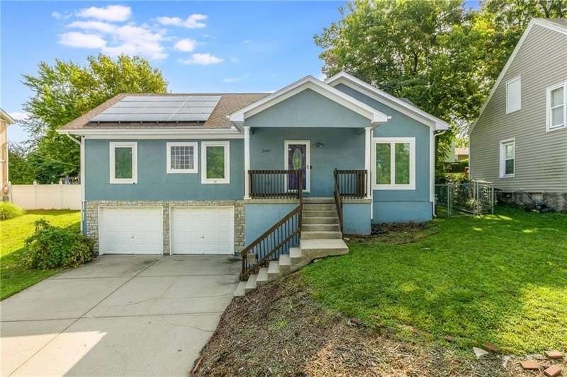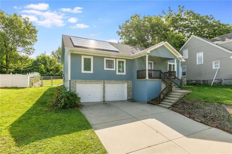 Price improvement. Motivated seller - Welcome to this delightful raised ranch home, ideally situated in one of the most central and convenient areas of Kansas City. Enjoy easy access to numerous amenities just a short drive away!All bedrooms are located on the main level, including a secluded primary suite for added privacy. The spacious finished basement features beautiful wood flooring, a half bath, and a utility room complete with washer and dryer.Enjoy energy savings year-round with installed solar panels. The large backyard offers plenty of space for outdoor activities and entertaining. Inside, the open-concept layout includes a generous kitchen and a formal dining area just off the kitchenperfect for gatherings.Dont miss out on this well-located, energy-efficient home with great living space inside and out!