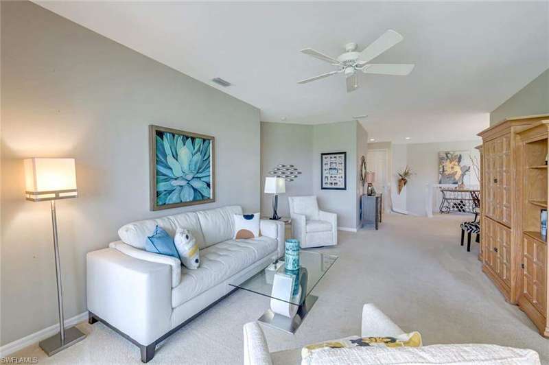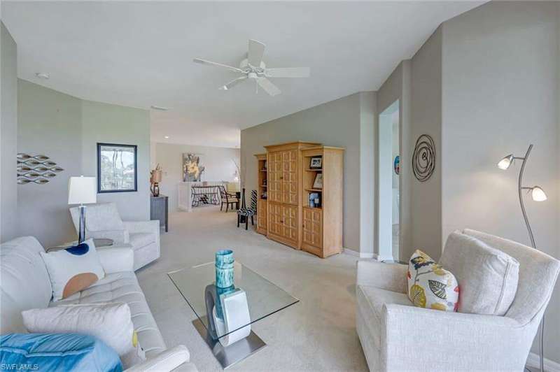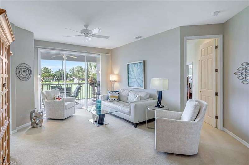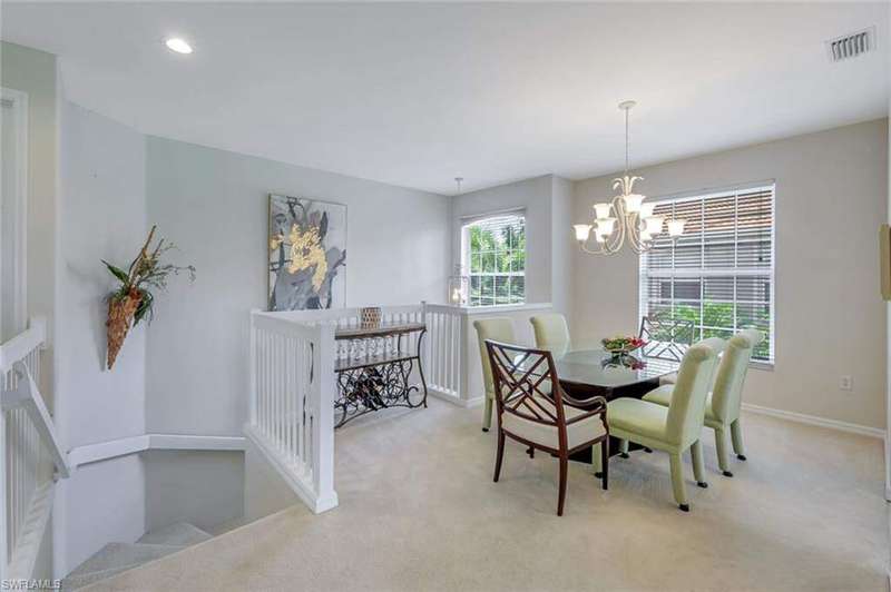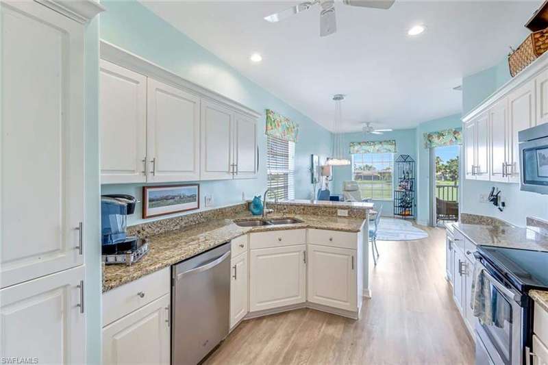 NEW EXCEPTIONAL OFFER on this rarely available upstairs END-UNIT coach home in the premier Wisteria Point neighborhood of Copperleaf! This spacious residence includes a TWO-CAR GARAGE and offers breathtaking long lake, golf course, and fountain views. Inside, you'll find luxury flooring in the entry, kitchen, and gathering room paired with plush new carpet and abundant natural light throughout. A separate laundry room adds convenience, while the oversized guest bedroom delights with a cozy day seat and storage underneath. Both bathrooms have been beautifully renovated with raised-panel cabinetry, granite countertops, new mirrors, and updated light fixtures. The primary bath shines with elegant finishes, all-new cabinetry, and a frameless glass shower with seating. The kitchen has been completely renovated as well, featuring new cabinetry, countertops, and lighting. Additional garage shelving provides excellent storage. Wisteria Point is known as the most social neighborhood within Copperleaf, setting itself apart with its active calendar of trips, game nights, social gatherings, and community events. Neighbors enjoy a true sense of connection, making this one of the most desirable places to live in the community. Residents also benefit from their own private pool and spa along with a dedicated social gathering area just steps away. Copperleaf itself is one of the most desirable bundled-golf communities in Southwest Florida, celebrated for being the lowest-density bundled golf community in the region. The newly completed clubhouse renovation offers a brand-new modern design with a wide variety of amenities, including the popular Osprey outdoor bar, fitness, tennis, bocce ball, spa, geothermal-heated resort pool, and a private on-site restaurant. The golf course is both challenging and highly playable, supported by a full practice facility with putting green, chipping area, and driving range. A bocce league with 400+ players, pickleball at the Commons Club, and endless social events make this one of the most engaging communities you'll find. In addition, residents have the opportunity to join The Commons Club through a separate private membership. The Commons Club offers a private Beach Club on Little Hickory Island with convenient parking, grilling areas, and games; a state-of-the-art Health & Wellness Center with expert-led programming, personal training, group fitness, and the latest equipment; The Rookery, a private waterside restaurant; seven newly built pickleball courts; a vibrant social calendar; and a dedicated Enrichment Center for member activities, learning, and community events. The location is unmatched-just minutes to Coconut Point, Miromar Outlets, Gulf Coast Town Center, and a short drive to RSW International Airport and white sandy beaches. Copperleaf truly offers an active, connected, and resort-style lifestyle.