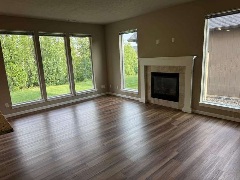 Welcome to this stunning 1.5-story rancher located in the desirable Summerhill development on Spokane’s 5 Mile Prairie. Offering 4 bedrooms and 3 bathrooms, this thoughtfully designed home features main floor living with LVP flooring throughout the main areas and cozy carpet in all bedrooms. The spacious primary suite is conveniently located on the main floor and includes a large walk-in closet, double sinks, and a tiled shower. Enjoy two generous family rooms—one on the main level with a cozy fireplace and a second oversized space upstairs, perfect for a media room or play area. The kitchen offers an eating bar, informal dining, and a separate eating nook, along with appliances including an electric range, refrigerator, microwave, dishwasher, and Washer and dryer are included. Other features include, Gas heat & central A/C with programmable thermostat, Vinyl windows & main floor laundry, 3-car garage, level lot backing up to a greenbelt for added privacy.