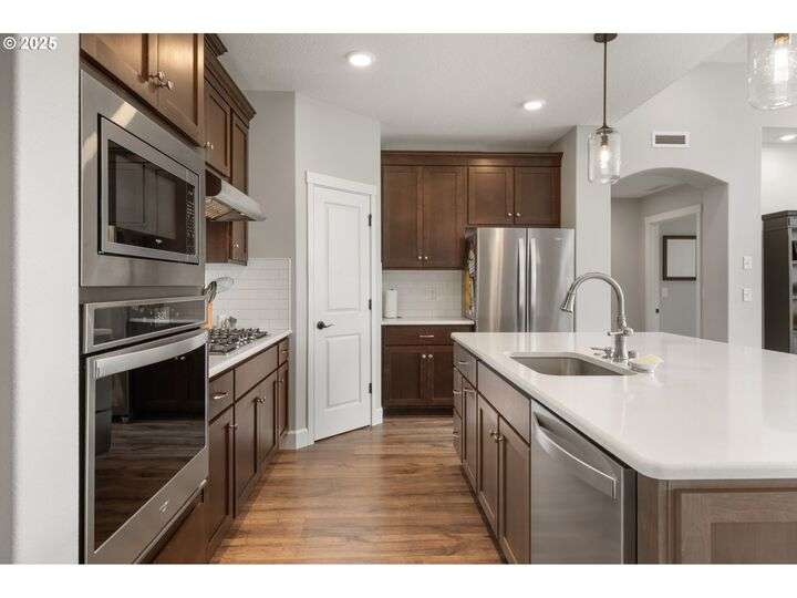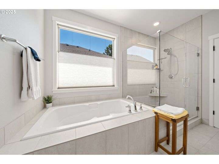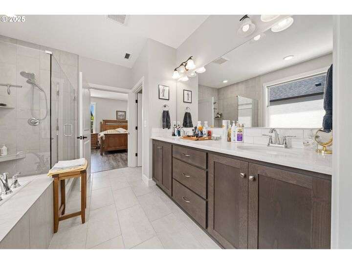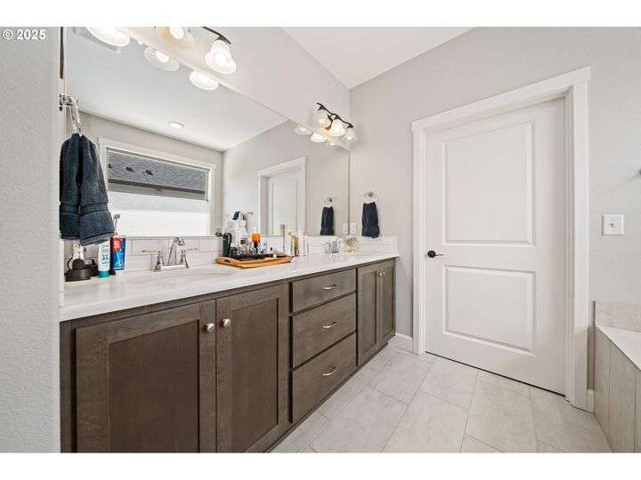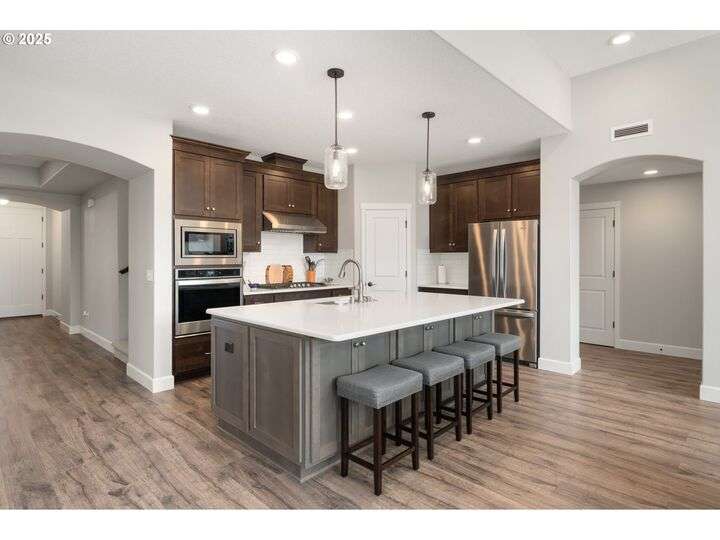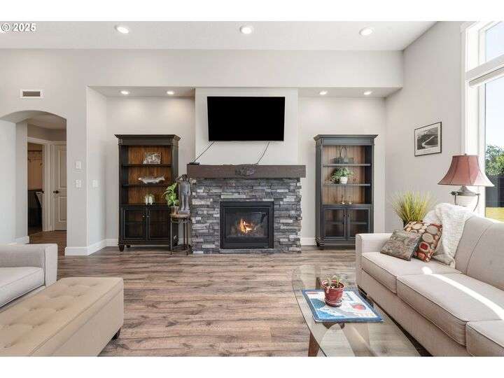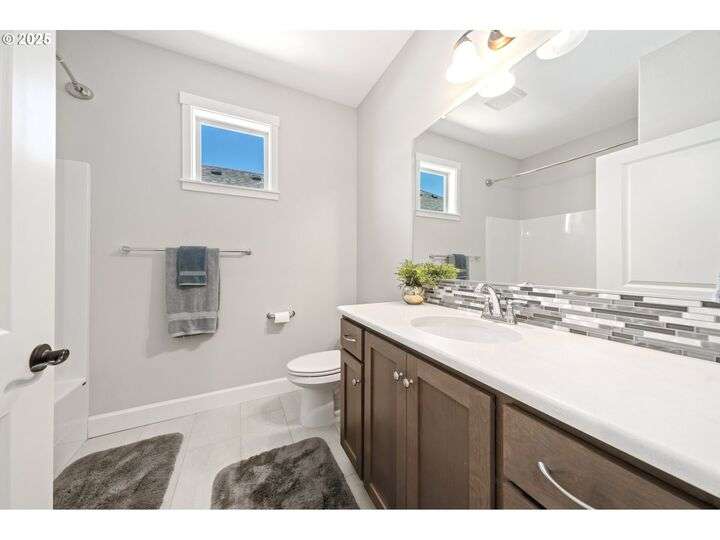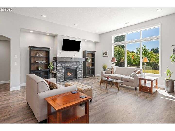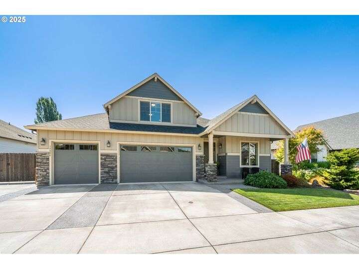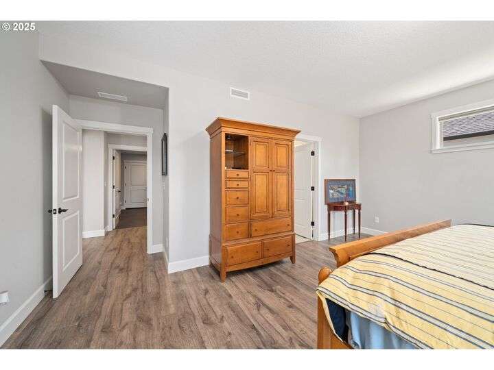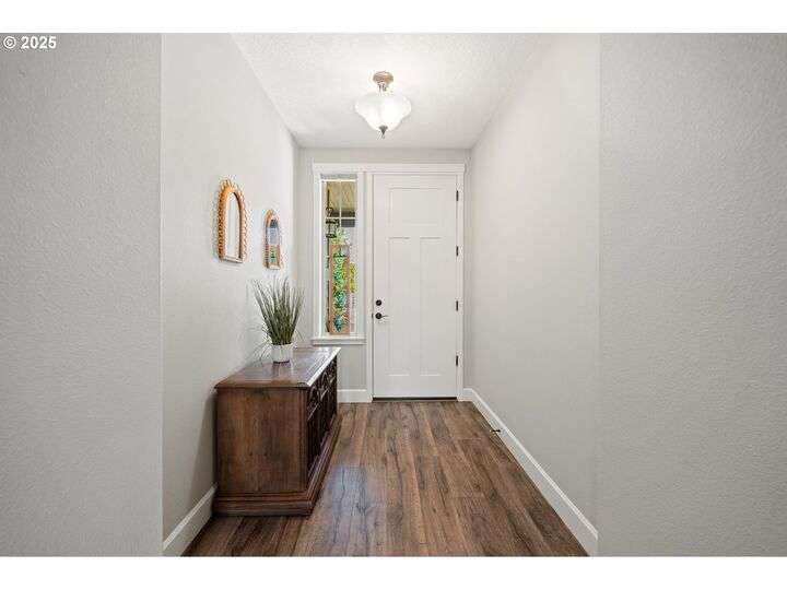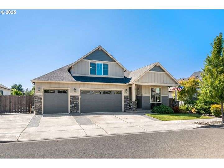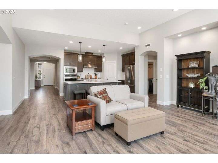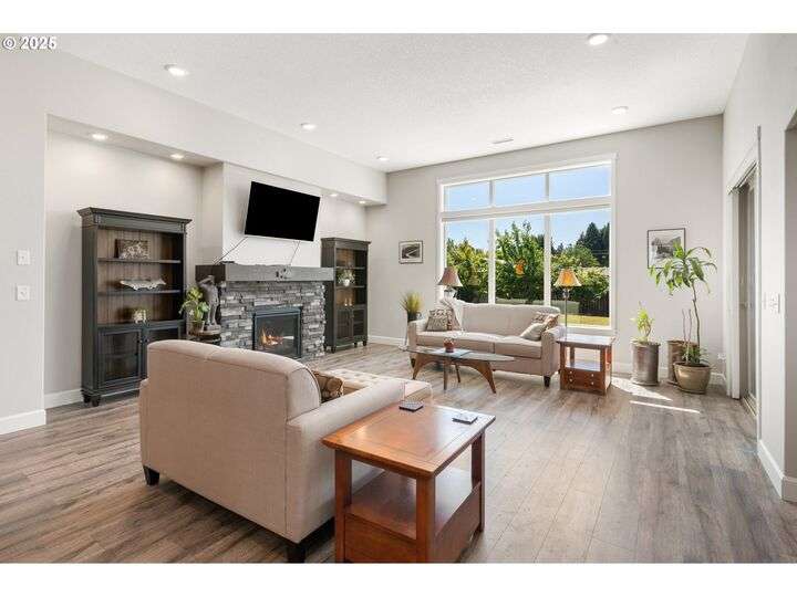 Welcome to the prestigious Heights at Pleasant Valley, where the most recent sales have closed in the $1.0–$1.3 million range. Built by award-winning New Tradition Homes, this like-new, energy-efficient residence sets a new standard in quality and functionality. The home features three spacious bedrooms on the main floor with NO carpets and extra wide hallways for easy mobility, and a massive upstairs bonus room with its own walk-in closet, offering flexibility for a guest suite, home office, or private retreat. The open-concept kitchen showcases quartz countertops, stainless steel appliances, a generous island with additional cabinet storage, and stylish touches throughout. The primary suite is positioned for privacy and natural light, with full bath and walk-in closet. Outside, enjoy a west-facing backyard backing to tranquil horse property—ideal for privacy and sunshine-filled afternoons. The outdoor space is beautifully curated with raised garden beds, fruit trees, a large concrete patio, and full irrigation. The home also includes custom blinds, upgraded lighting, built-in garage storage, and a finished garage. One of the rare offerings at this price point, the paved RV parking pad provides space for extra vehicles or toys. Located just minutes from WSU Vancouver, Salmon Creek trails, Legacy Hospital, and top-rated Pleasant Valley Schools, this low-traffic second home shows minimal wear and tear. With HOA front-yard landscaping included, move-in-ready sophistication awaits in one of Vancouver’s most coveted enclaves.