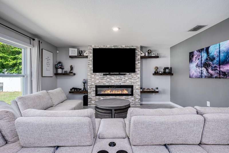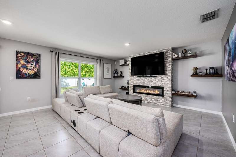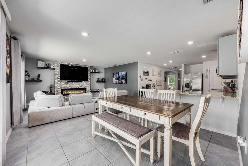 **SELLER MOTIVATED!!** Welcome to this inviting 3-bedroom, 2-bath home, built in 2020 offering the perfect blend of modern design, energy efficiency, and everyday functionality—all with NO HOA and situated on an oversized lot in a prime Deltona location! Step inside the popular Dakota floor plan and be greeted by a light and bright open concept layout where the kitchen, dining, and living room flow effortlessly together. Ideal for entertaining or simply enjoying daily life, this layout offers tile flooring throughout the main living areas, creating a cohesive and low-maintenance space. The modern kitchen is sure to impress with granite countertops, stainless steel appliances, a stylish updated backsplash, and a spacious breakfast bar. The open living area features a custom built-in fireplace, adding warmth and a stylish focal point. Tucked away for privacy, the primary suite offers a relaxing retreat with a private en-suite bath, while two additional bedrooms share a second full bath—perfect for family or guests. You’ll also love the updated laundry room, energy-efficient windows, and solar system that help keep utility costs low. Step outside to enjoy your fully fenced, oversized backyard complete with storage shed and firepit with enough space for a garden, play space, pool, or anything else to fit your needs. Enjoy easy access to Lake Monroe, local trails, parks, shopping, and more—all while living fee-free with no HOA restrictions. Don’t miss your chance to own this move-in-ready home with thoughtful upgrades in a growing Central Florida community. Schedule your private showing today!