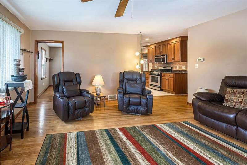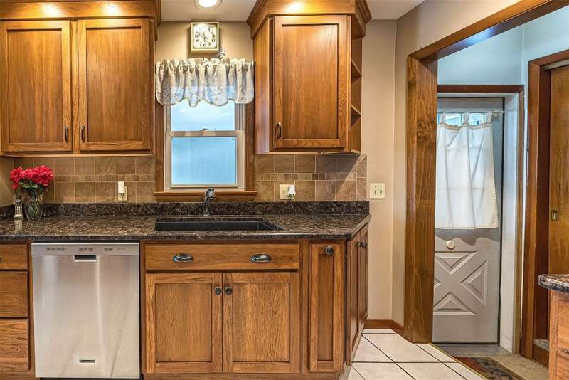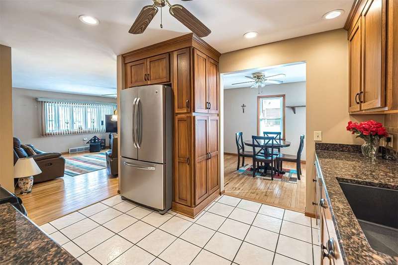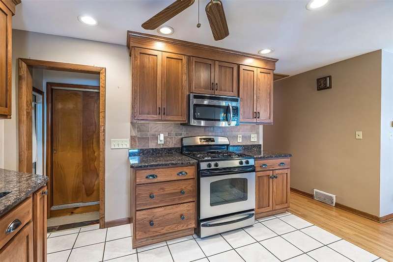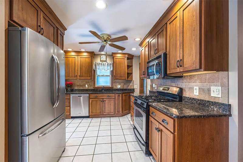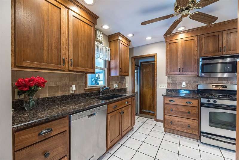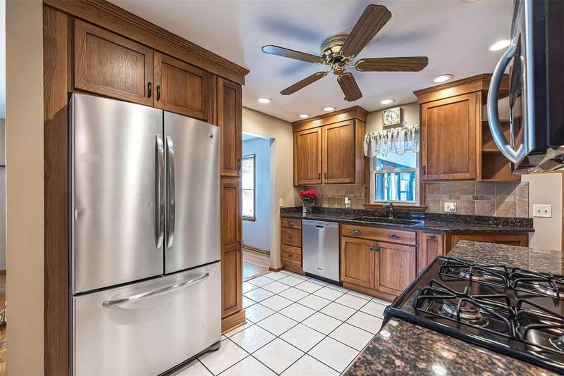 A Home with the works! Updated interior and exterior! Hardwood floors. The kitchen is a step above, with granite counters, rich mahogany cabinets that extend all the way to the ceiling, ceramic tiled floor and black and stainless appliances. Take note of the natural light and bay window in the living room. Formal dining room. Full finished basement with huge family room. Fenced in yard. The breezeway attaches the two car garage and is a perfect landing spot! Tons of storage throughout! Upgraded HVAC 3-23-21 and hot water tank 10-13-2022.