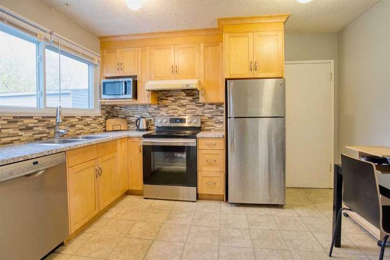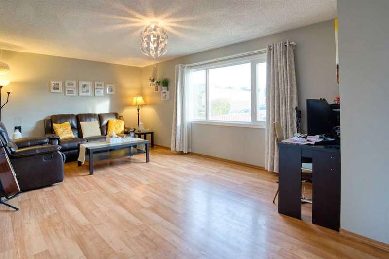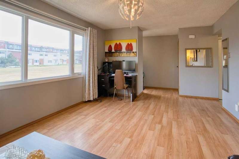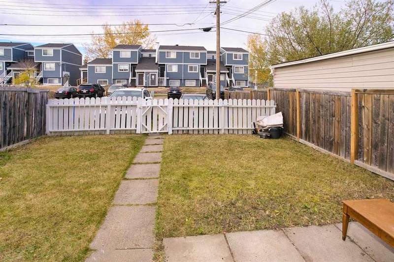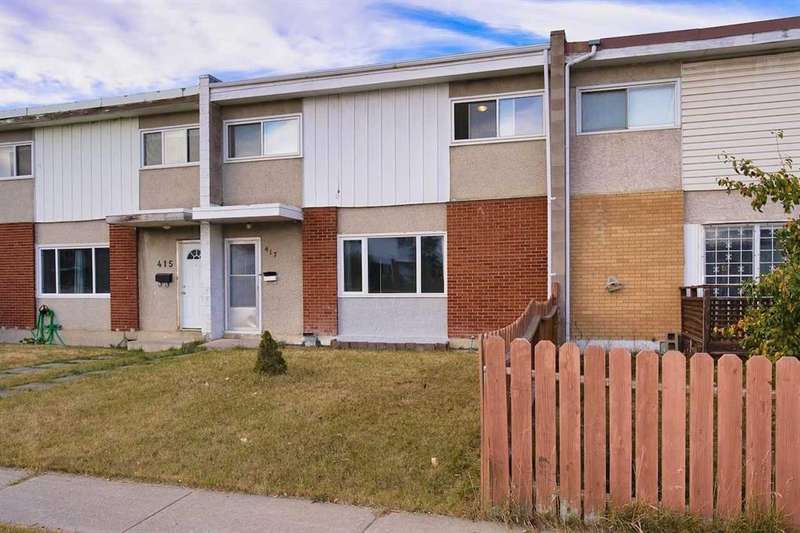 Welcome to 417 Goddard Ave NE, a NO CONDO FEE TOWNHOME offering 4 BEDROOMS and 1.5 BATHROOMS, blending comfort and affordability in one great package. The home features UPDATED WINDOWS (2020) for energy efficiency, LAMINATE AND VINYL TILE FLOORING ON THE MAIN FLOOR, and a kitchen with STAINLESS STEEL APPLIANCES, WELL-MAINTAINED WOOD CABINETRY AND SHELVING updated in 2018, and a GOOD-SIZE PANTRY for everyday convenience. The main floor is anchored by a SPACIOUS LIVING ROOM filled with natural light, providing a welcoming space for family and guests. The upper level features 4 bedrooms (one is currently used as an office/den) and a full bathroom. The DECENT-SIZED BACKYARD is fully fenced. At the front, the yard faces an open green space, lending an airy and pleasant view, as well as a sense of openness. This central location is just a three-minute walk to nearby bus stops and provides easy access to McKnight Trail, Edmonton Trail, and Deerfoot Trail. With restaurants, shopping, and essential amenities close at hand, this property delivers both convenience and comfort. Schedule your showing today and see the value this home can bring to your next chapter.