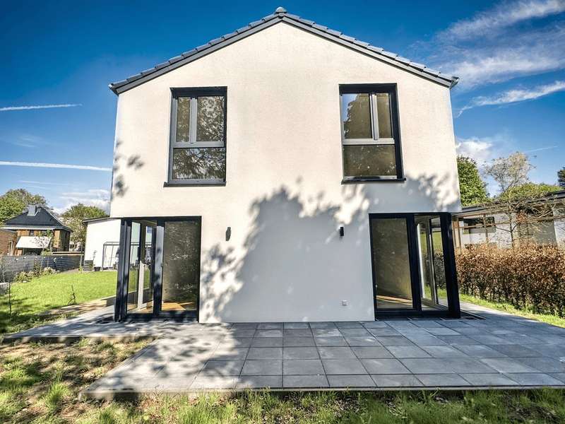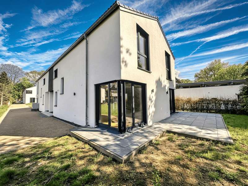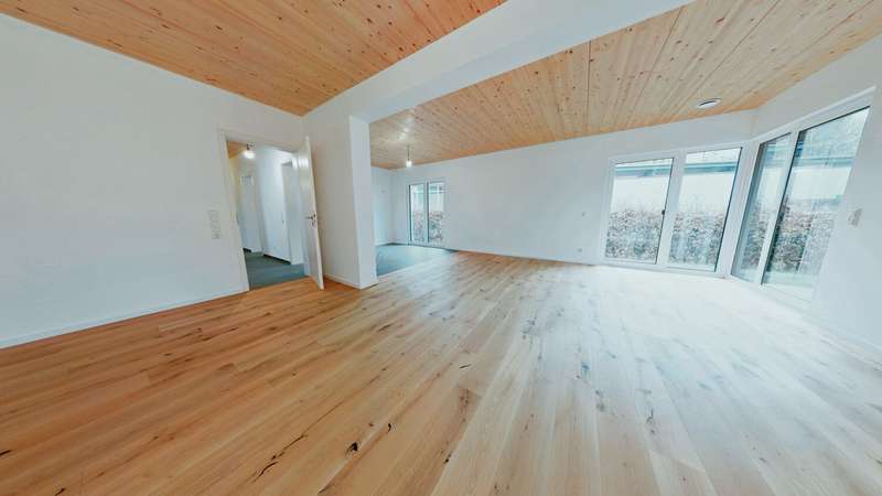This architecturally appealing semi-detached house built in 2024 offers you modern comfort, energy-efficient construction and high-quality fixtures and fittings on a living space of approx. 157 m². The first-time occupancy of this new-build property promises you a high standard of living quality. The property is being built in a healthy timber frame construction and boasts a highly thermally insulated building envelope (energy efficiency house A+), which contributes to a balanced indoor climate and sustainably reduces energy costs. Natural building materials such as external insulation made from sheep's wool and wood wool meet the highest standards - even for allergy sufferers. With a total of four well-designed rooms, including three comfortable bedrooms and a well-equipped bathroom, the property meets numerous requirements for contemporary living. The spacious plot with an area of around 606 m² opens up a wide range of possibilities for individual garden design and impresses with a west-facing terrace area. Heating is provided by a modern air-to-water heat pump from the renowned Nibe brand, coupled with underfloor heating in all rooms - so you can enjoy comfortable heat distribution all year round. Windows with triple glazing and electrically operated privacy and light protection systems not only contribute to energy efficiency, but also to the pleasant atmosphere. Another highlight is the photovoltaic system with 20 modules and a total output of 7.8 kWp including inverter (8 kW) and bidirectional meter in the technical room. This not only protects the environment, but also reduces ancillary costs in the long term. The central ventilation system with an impressive 90% heat recovery rate also ensures a pleasant indoor climate, providing a constant supply of fresh air. The heart of the house is the open, light-flooded living and dining area with direct access to the terrace. The open-plan design allows the seamless integration of your individual kitchen planning and offers generous space for cooking, eating and relaxing together. The west-facing terrace extends the living area into the countryside and invites you to spend convivial hours in your own garden. The outdoor parking space on the property is already equipped with a cable connection for a wallbox - ideal for owners of an electric vehicle or those who want to become one. The fixtures and fittings are sophisticated and well thought-out throughout. Here you can live energy-efficiently, comfortably and in attractive surroundings. The combination of modern technology, sustainable construction and high-quality fittings makes this offer particularly attractive. See for yourself during a personal viewing and discover the advantages of this exceptional property. We look forward to your inquiry!