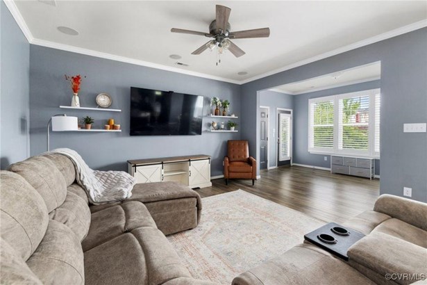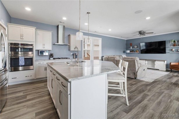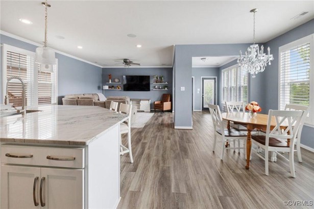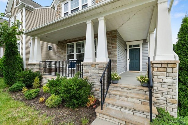You will not want to miss this beautiful 4 bedroom, 3.5 bath stone and vinyl Craftsman home in the sought-after Wyndham at Fox Creek community, located in one of Chesterfield's top-rated school districts. With charming curb appeal and a welcoming front porch perfect for morning coffee or afternoon tea, this home offers both style and function. Inside, the open-concept layout centers around a stunning chef's kitchen featuring custom quartz countertops, a spacious island with a large sink and gooseneck faucet, upgraded gas cooktop with exterior-vented hood, microwave and wall oven, stainless steel appliances, pendant lighting, and a generous walk-in pantry. The kitchen flows effortlessly into the dining area, family room, and a cozy bonus space complete with a triple window and an elegant chandelier-ideal for entertaining or relaxed everyday living. A first-floor bedroom with en-suite bath provides flexibility for guests or multigenerational living. Upstairs, the spacious primary suite offers a tray ceiling, recessed lighting, a large walk-in closet, and a luxurious en-suite bath with a double vanity and glass-door shower. Upstairs bedrooms include walk-in closets, and a central loft area offers great bonus space for work or play. Thoughtful upgrades throughout include luxury engineered hardwood flooring, plantation shutters throughout the first floor, and elevated, custom finishes on the front porch, in the kitchen and primary bath. Step outside to enjoy a hardscaped patio with built-in bench seating and a firepit-perfect for outdoor gatherings in one of the larger yards in the neighborhood. Wyndham at Fox Creek is a master-planned community offering incredible amenities, such as a splash park and playground just a block away, plus a clubhouse, pool, tennis courts located in the community. Conveniently located near popular restaurants, grocery stores, shopping, and major highways, this home offers the perfect blend of comfort, convenience, and community. #itcouldbeyours