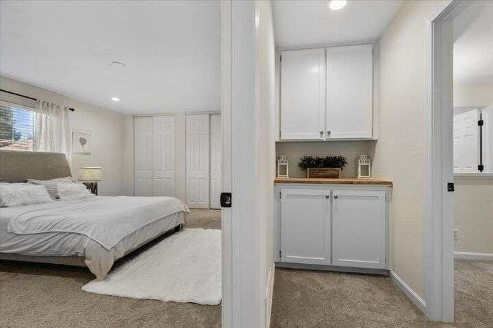 Welcome to this completely renovated, light-filled corner-unit townhome in the highly desirable Colony Green community of Blossom Valley. Perfectly positioned for privacy and convenience, this beautifully updated two-story home features one of the communitys most sought-after floor plans, highlighted by two oversized master bedrooms with private ensuite baths and exceptional space that rivals many single-family homes. The open main level features a bright living area, dedicated dining space, and a modern kitchen with quartz countertops, stainless steel appliances, and abundant cabinetry. New flooring, recessed lighting, and fresh finishes create an inviting atmosphere that feels both stylish and comfortable. A private patio extends the living space outdoors, ideal for entertaining guests. Highlights also include central heating and air conditioning, in-unit laundry, and a private two-car garage. Secluded guest parking just steps away offers easy access for friends and family. The Colony Green community is known for peaceful park-like setting that provides a true sense of retreat. Conveniently located near shopping, dining, and major highways 85, 87, and 101, this move-in-ready home combines modern design, comfort, and location, making it one of the standout homes in the community
