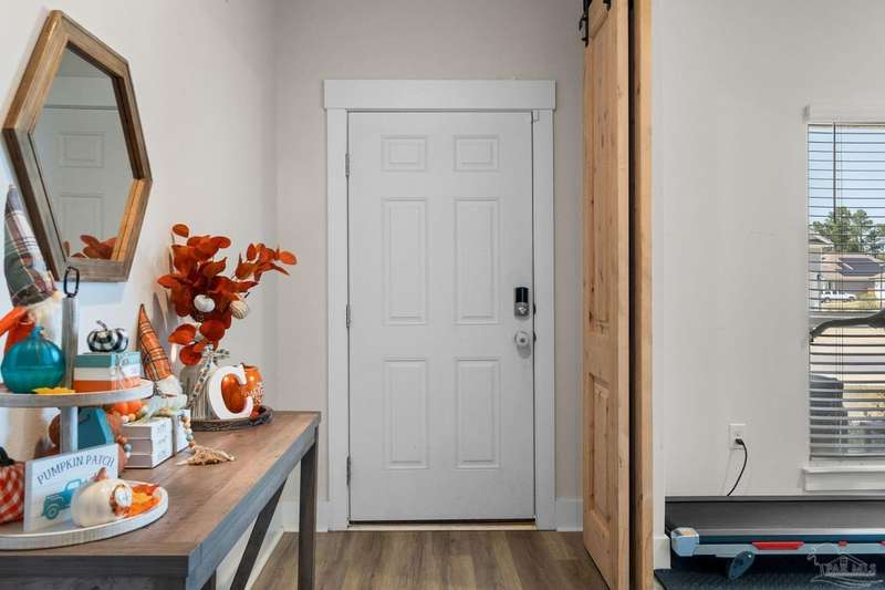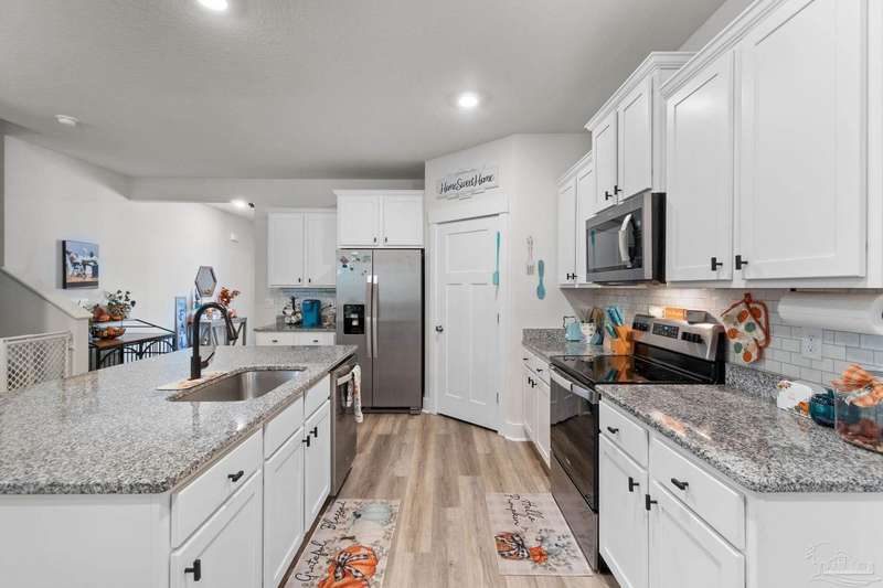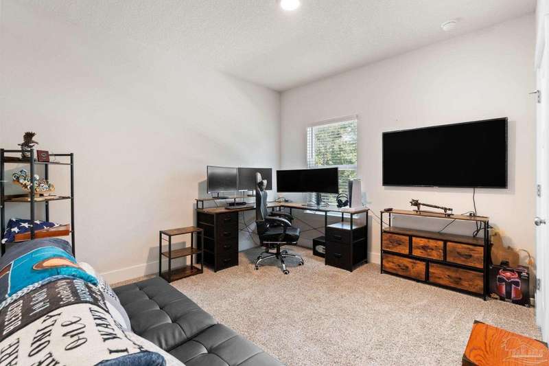 Built in 2022 & better than new! This stunning 5-bed, 3-bath home PLUS study (with stylish barn doors!) has it all - including a flexible floorplan with 2,511 sq. ft. of living space designed for comfort and style. The dedicated study is currently a workout room, while upstairs you'll find a cozy loft perfect for a reading nook, office, or extra hangout space. ?? Love to cook & entertain? The kitchen features granite countertops, an island bar for casual dining, and seamless flow into the open living area. Luxury vinyl plank flooring runs through the main living spaces and bathrooms, while plush carpet keeps the bedrooms cozy. The spacious primary suite boasts a double vanity, relaxing garden tub, walk-in shower, and generous closet. Step outside to your oversized 40x15 enclosed lanai overlooking a peaceful greenbelt - no backyard neighbors! Upgrades include a new wooden fence, metal gutters, and a 12x12 concrete pad ready for your future shed. This home truly checks all the boxes - modern, stylish, private, and move-in ready. Call today to schedule your private showing before it's gone!
