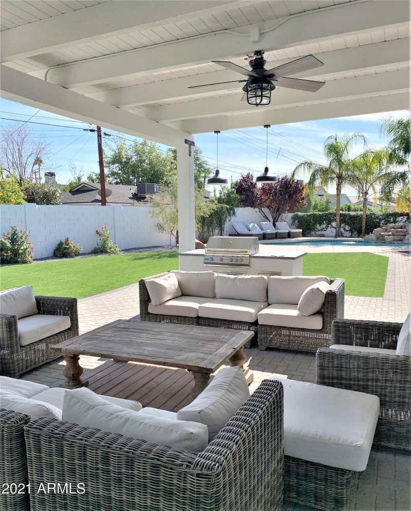 **FULLY FURNISHED RENTAL** Bright and beautifully remodeled 5-bedroom home (plus bonus room) with 3 bathrooms, located in Arcadia Proper. The gourmet kitchen boasts Wolf appliances, a gas range, double oven, and an island, fully stocked with dishware, flatware, pots, pans, and all the essentials. Linens and towels are provided for your convenience. This home offers multiple spaces for entertaining, including a formal dining room, kitchen nook, island bar seating, spacious family room, and an inviting outdoor living area with a brand-new BBQ. Relax by the pool, complete with an outdoor shower for added luxury. Conveniently located near Old Town Scottsdale and just minutes from Phoenix Sky Harbor Airport. Check the calendar for availability.