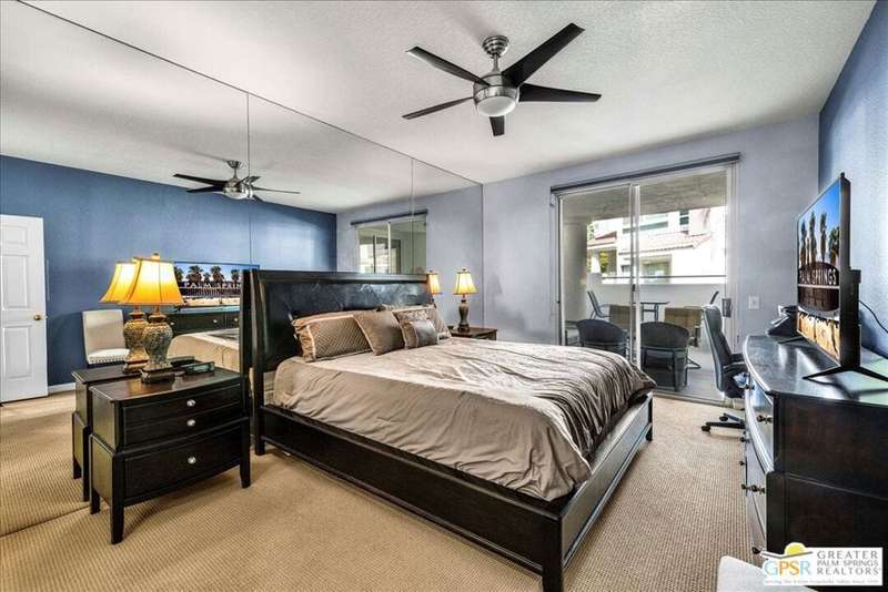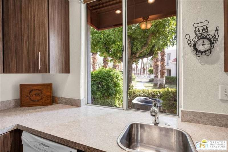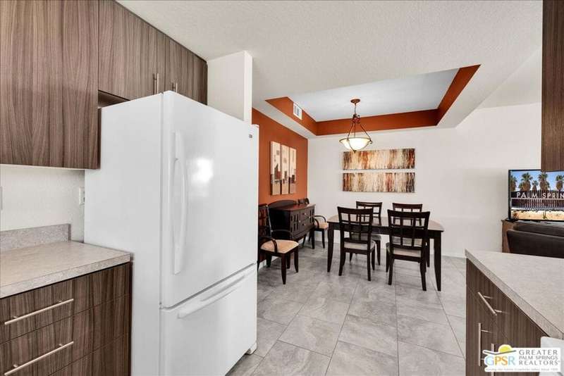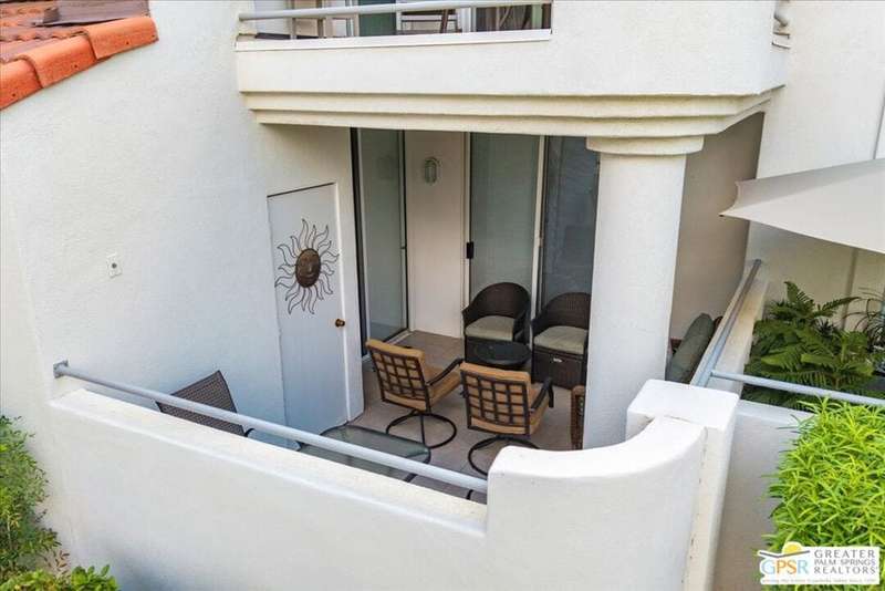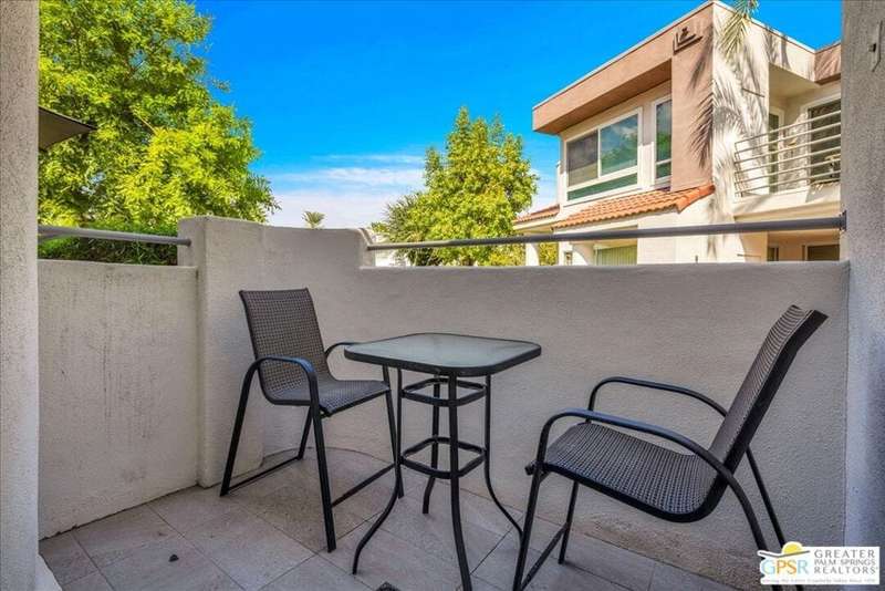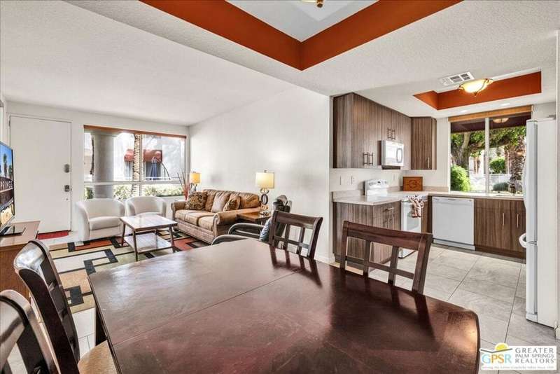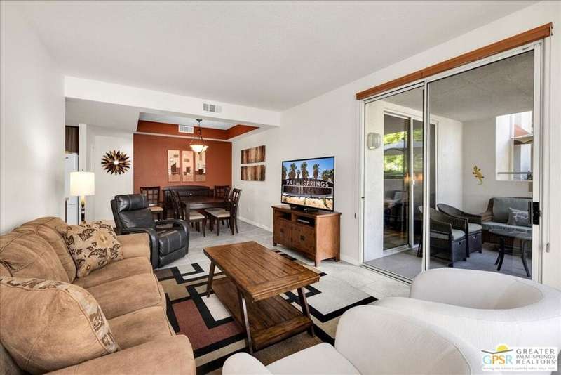 Look no further! This turnkey furnished condo is tucked into a desirable interior location within the sought-after La Palme community, offering the perfect blend of comfort, style, and resort living. Inside, you'll find two spacious primary suites large enough for a king bed, tile flooring in the main living areas, ceiling fans, and custom window treatments. The remodeled kitchen is both elegant and functional, featuring cabinetry that extends to the ceiling and a charming window over the sink with tranquil pool views. The primary bath offers dual vanity and remodeled walk-in shower. The living room and one of the bedrooms open to an expansive enclosed covered patio, fully tiled and ideal for relaxing or entertaining. Additional features include indoor laundry and assigned covered parking for convenience. La Palme residents enjoy a resort lifestyle with six sparkling pools and spas, three tennis courts, lush landscaping, and two EV charging stations. HOA dues include roof, water, trash, Wi-Fi, and basic cable with HBO making ownership truly effortless. This is also a non-smoking community. All of this is just minutes from downtown Palm Springs, the Convention Center, Palm Springs Airport, and Spa Casino, putting the best of the desert right at your doorstep. Come experience the best of Palm Springs living at La Palme!